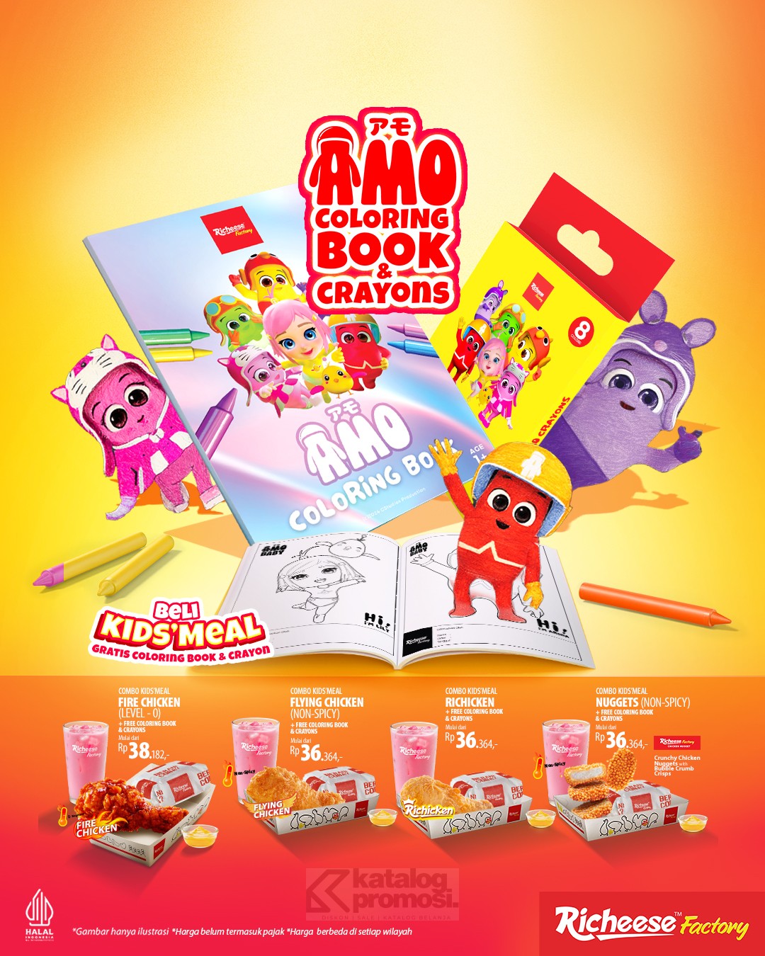 Nikmati Kids’ Meal spesial di Richeese Factory dan dapatkan Amo Coloring Book + Crayon! Hadiah seru buat si kecil, plus pilihan menu yang lezat!