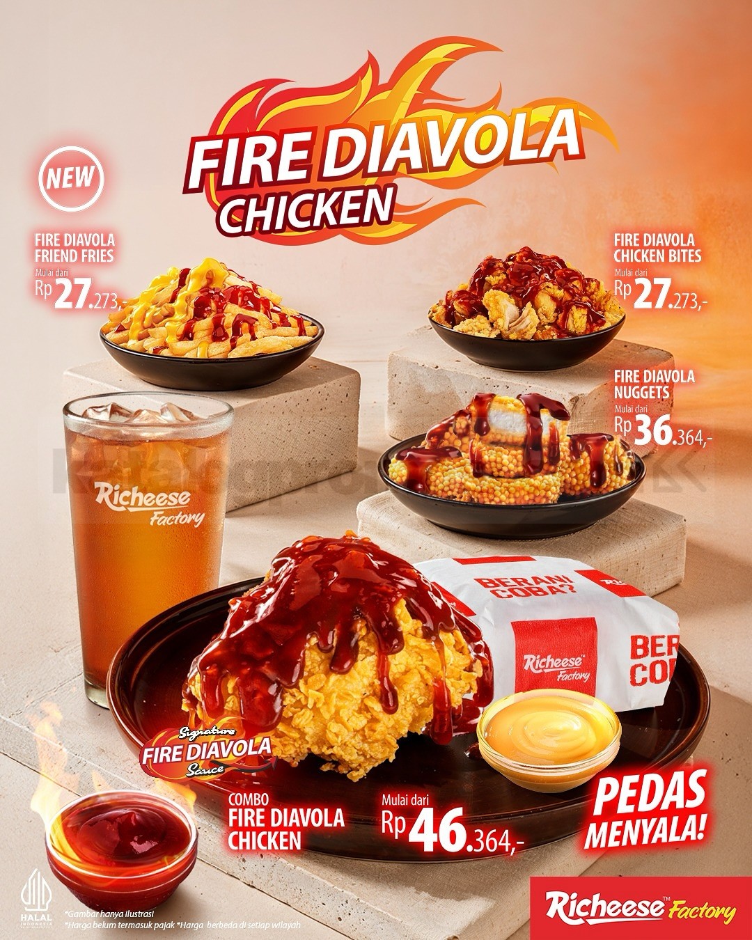 ๐ฅ Buat kamu yang suka pedes, wajib banget cobain Promo Richeese Factory NEW! Fire Diavola Series mulai dari Rp27ribuan! Ada banyak pilihan seru sepert: