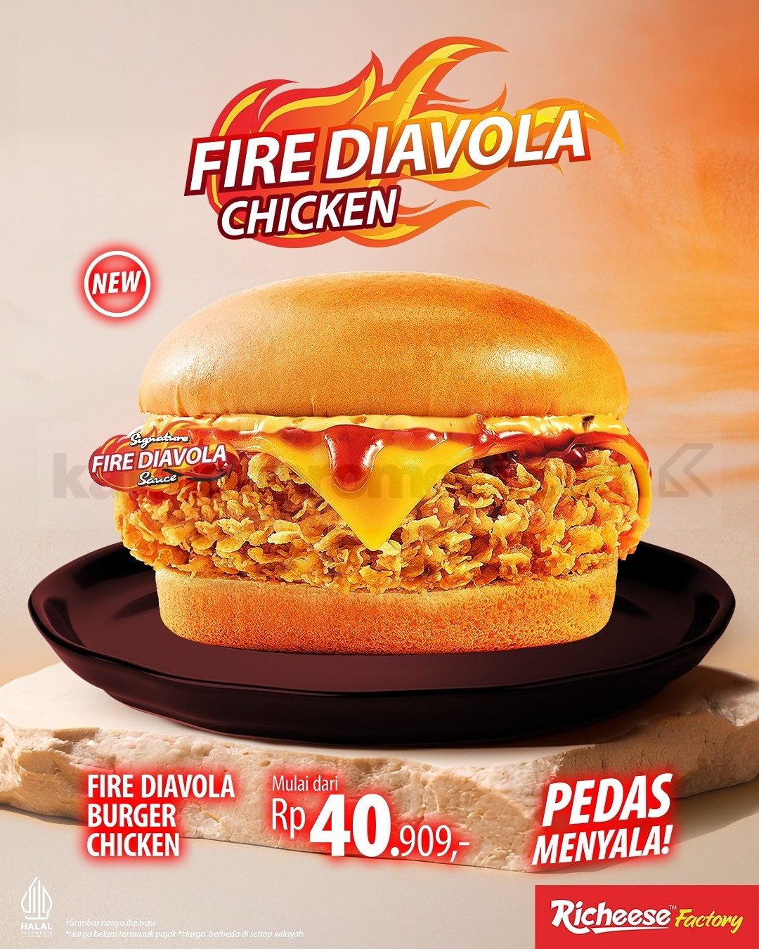 Promo Richeese Factory NEW! Fire Diavola Series mulai dari Rp27ribuan dapat dibeli melalui pembelian Dine In, Takeaway, Drive Thru dan Ojol yaaaa!