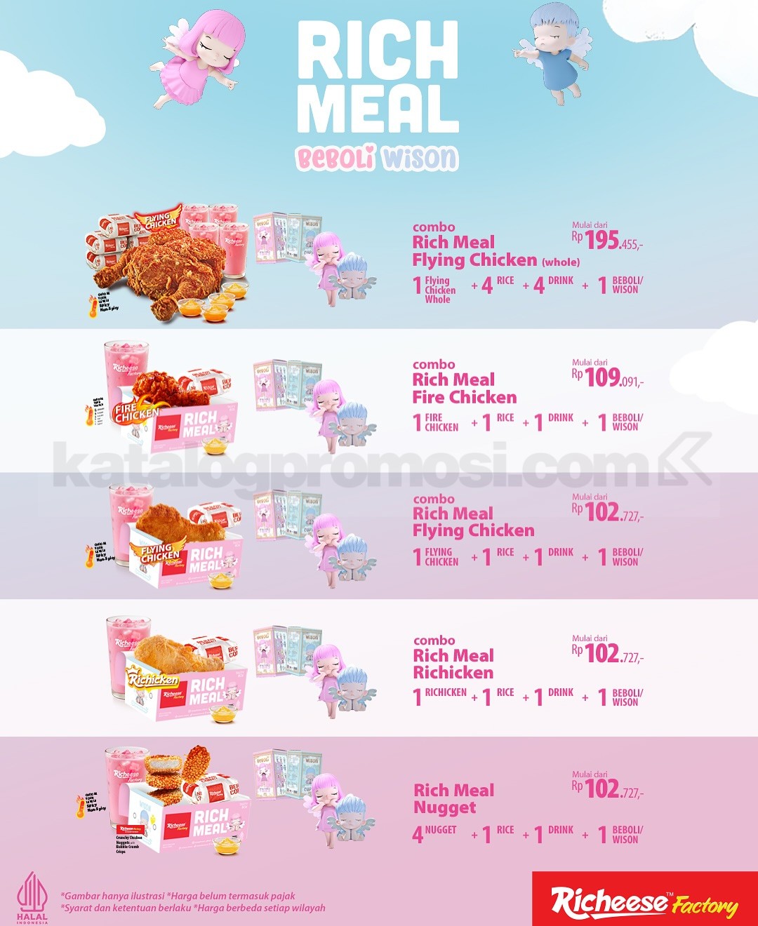 Promo Richeese Factory x TWICE Rich Meal Beboli Wison mulai Rp. 102.727 dengan bonus figurine lucu, berlaku selama persediaan di seluruh outlet.