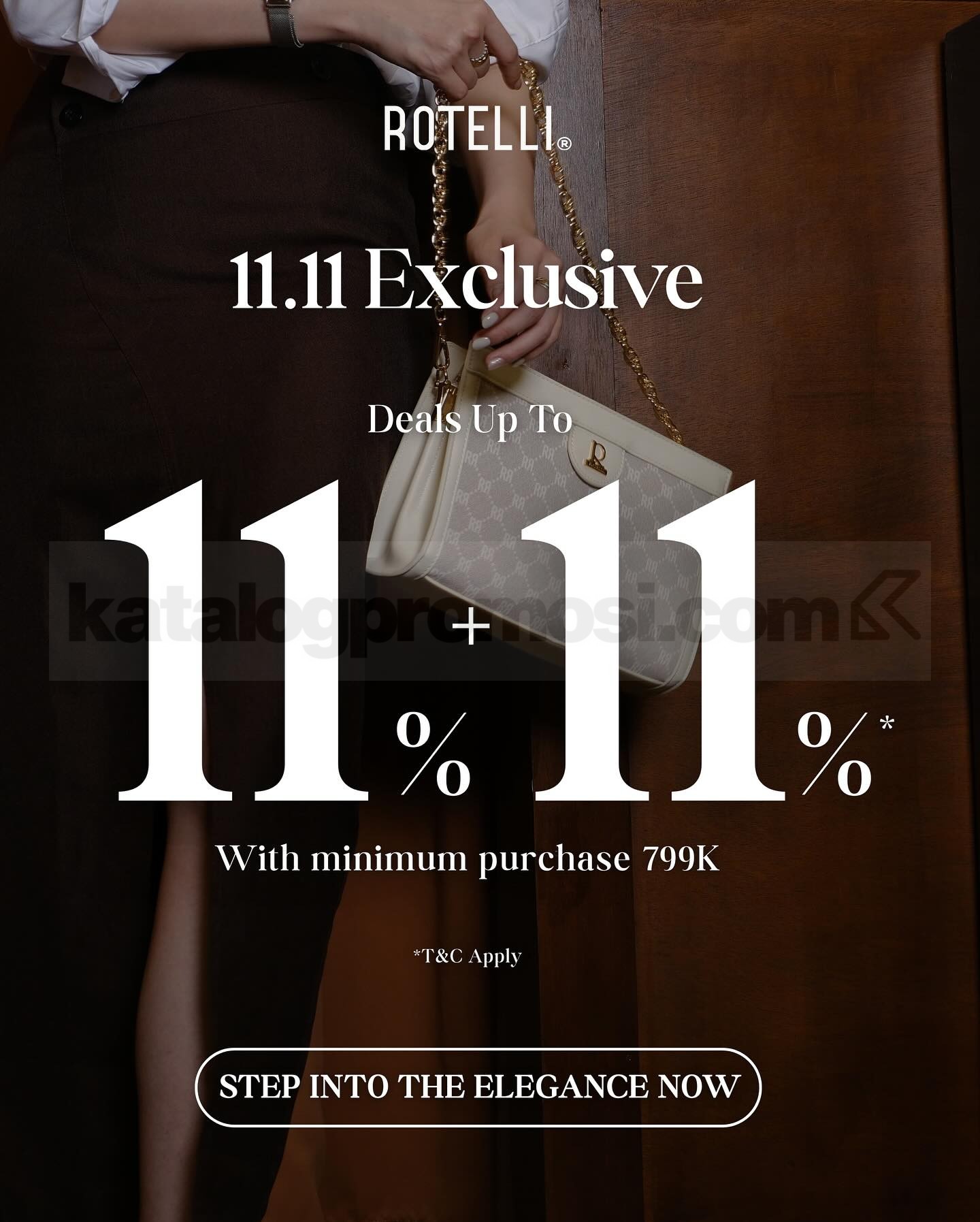 Rayain momen tanggal cantik dengan gaya elegan lewat Promo Rotelli 11.11 Discount Up To 11% + 11% โ karena satu diskon aja nggak cukup buat kamu yang classy dan stylish! ๐