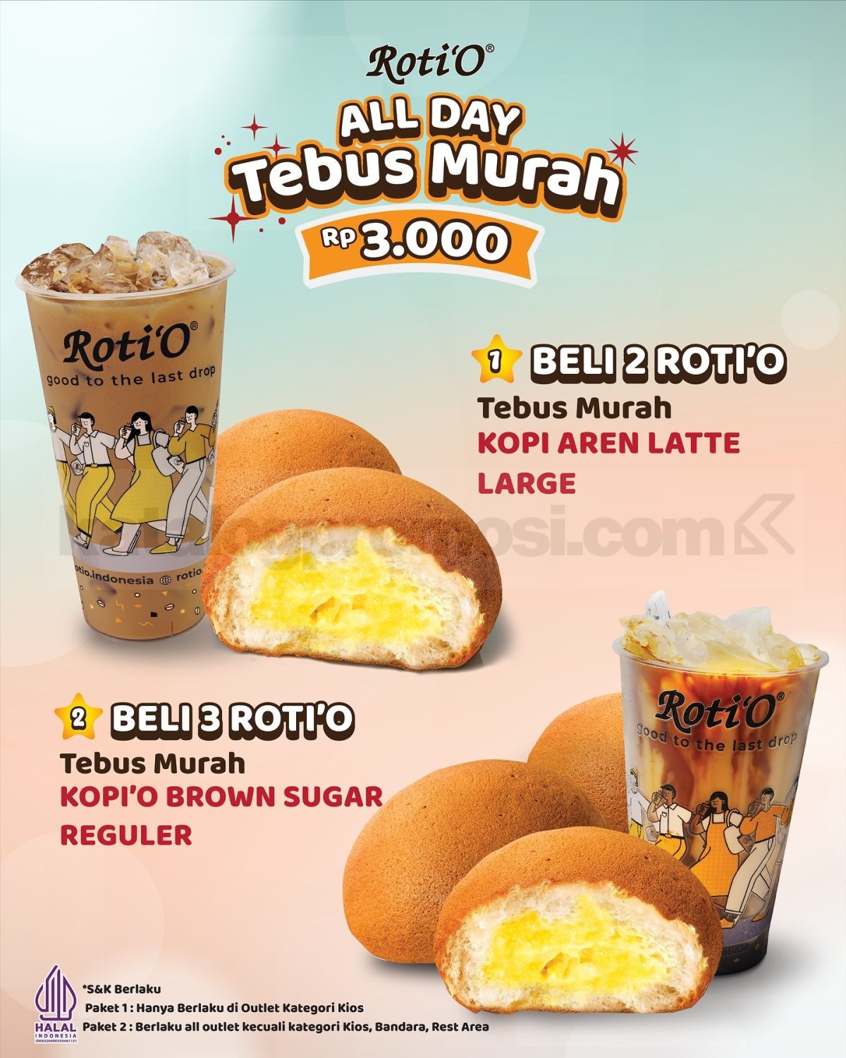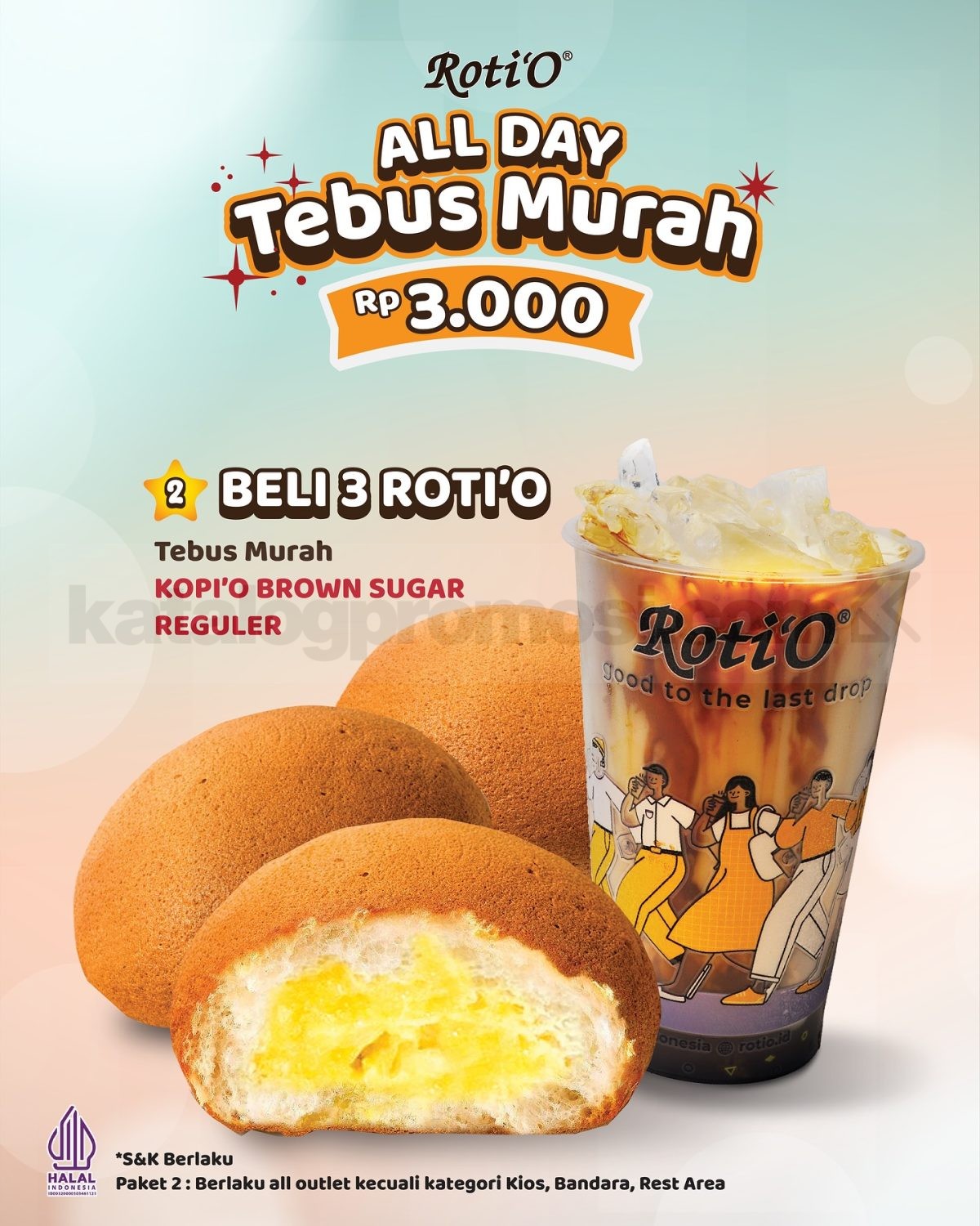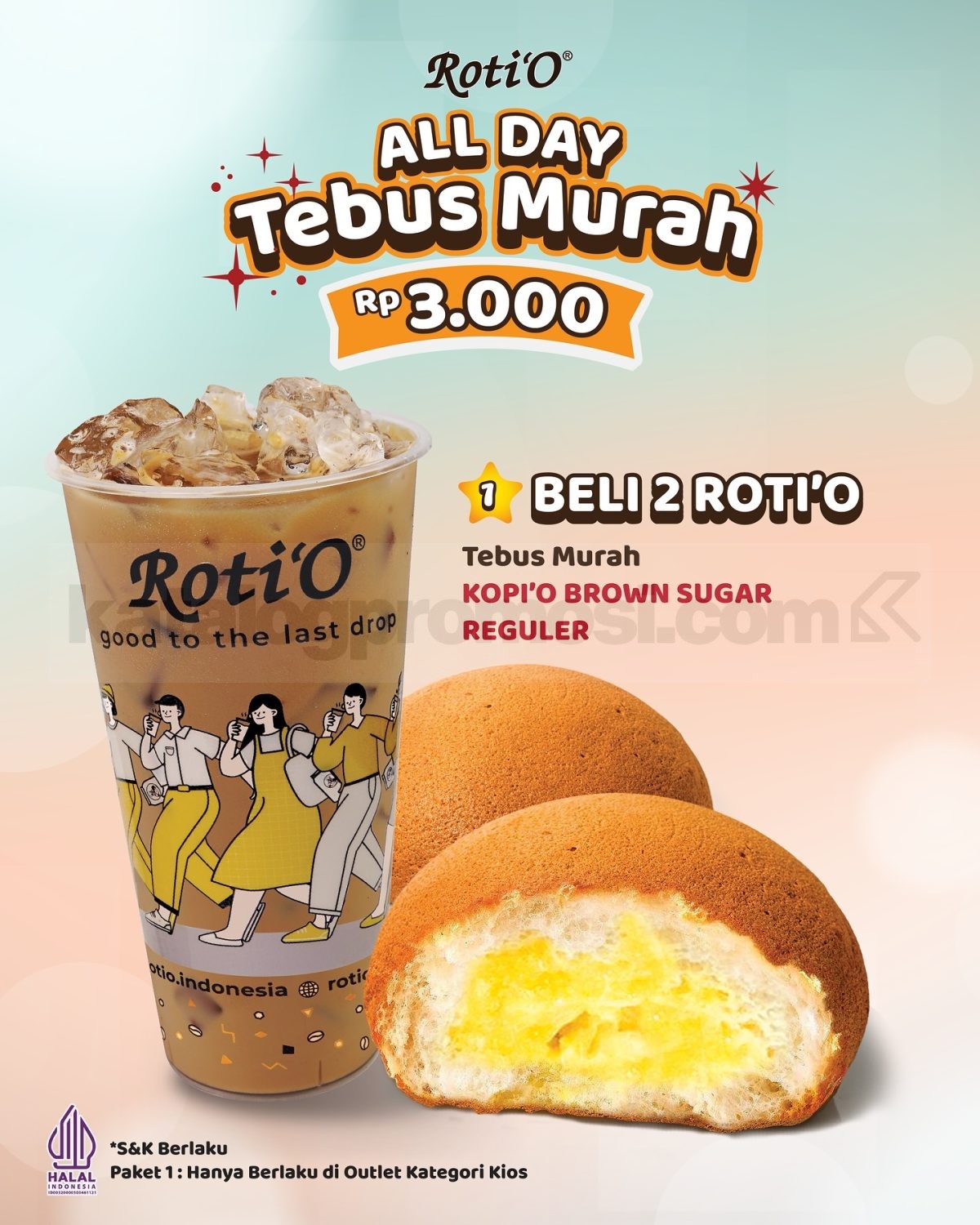 Promo All Day Tebus Murah RotiโO cuma nambah Rp 3.000 dapet KopiโO! Berlaku di outlet tertentu sampai 31 Mei 2025. Yuk buruan ke RotiโO!