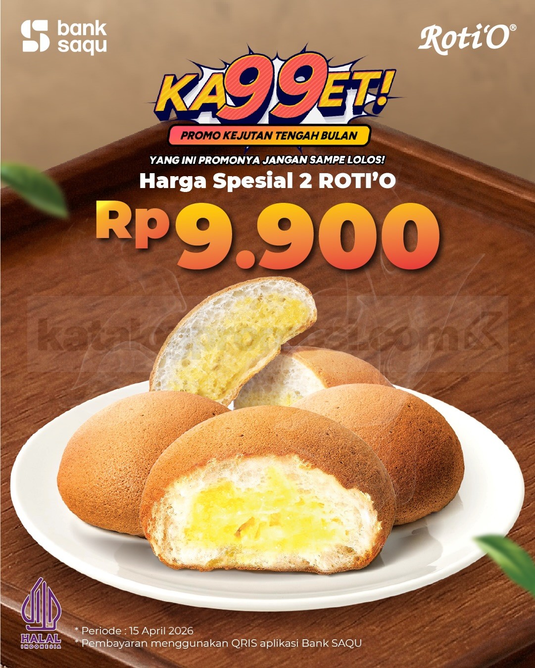 - Promo 2 Roti Rp. 9.900 hanya berlaku pada tanggal 15 April 2026.