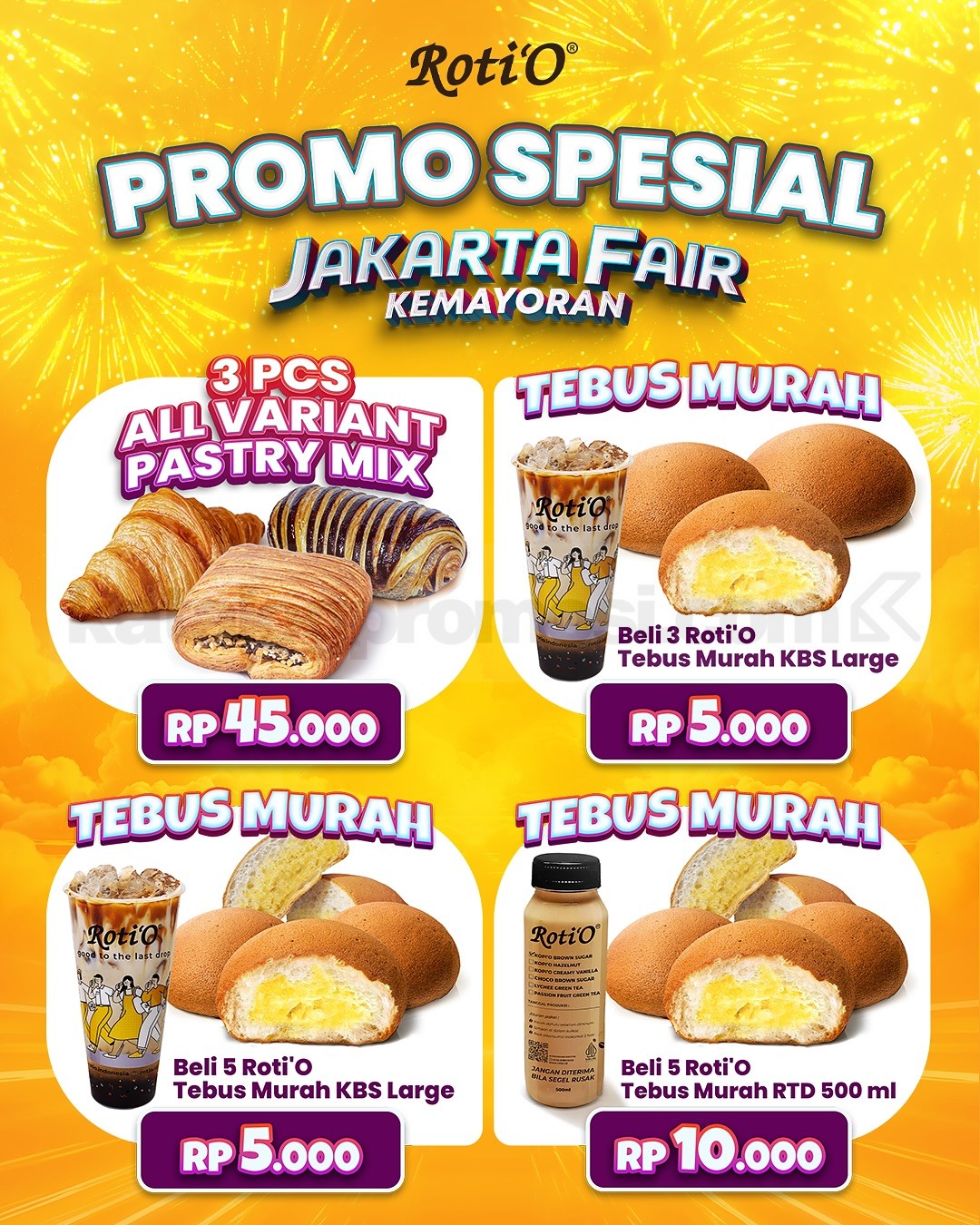 5. Berlaku di seluruh outlet Roti’O kecuali Bandara, Rest Area, Foodtruck, dan d’primahotel Mahkota.