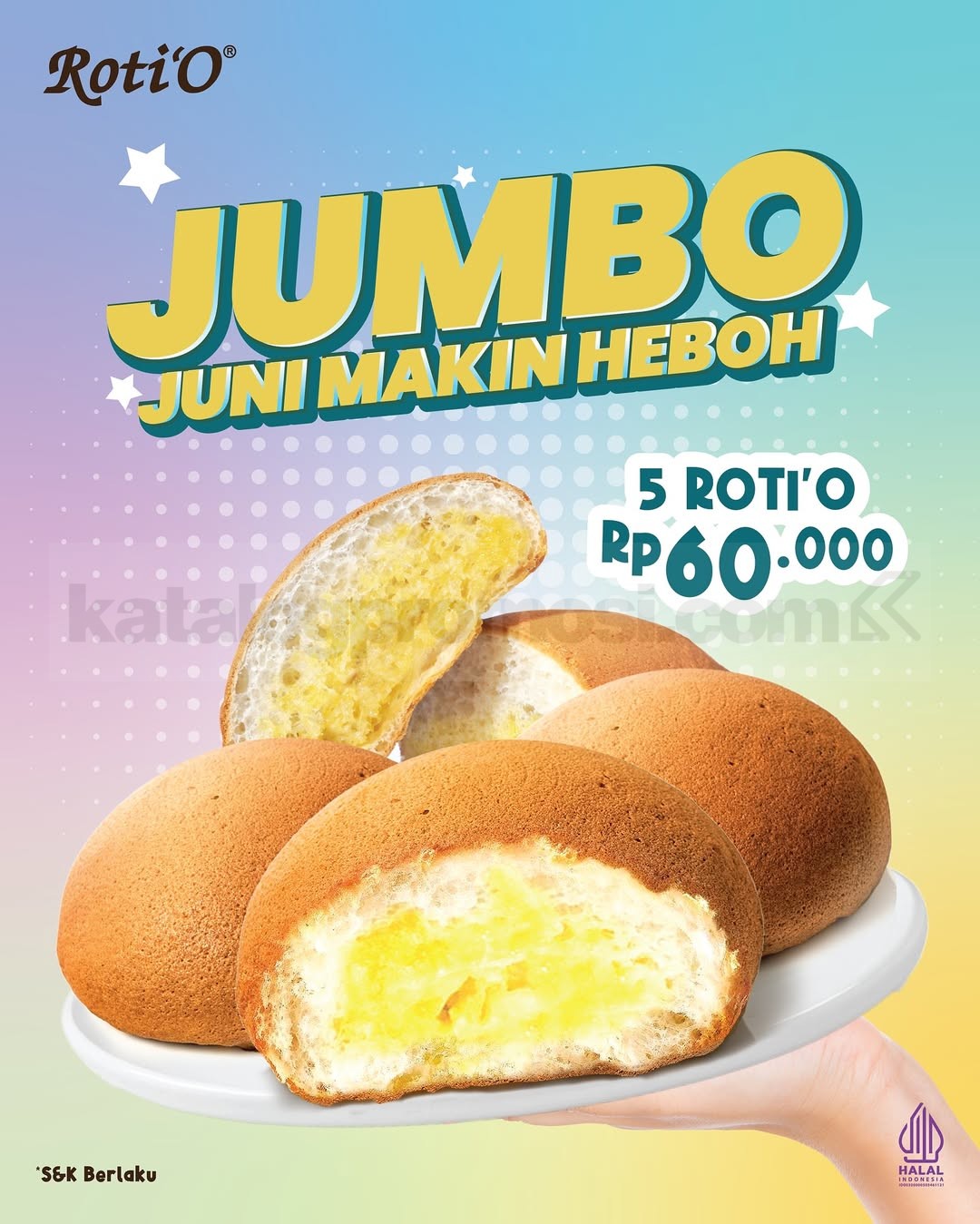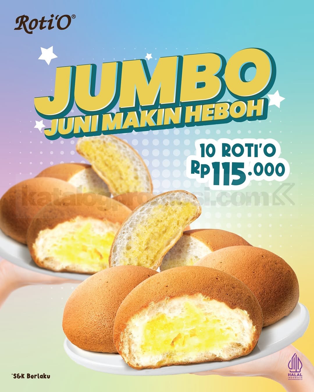 Promo Roti’O JUMBO hadirkan paket hemat 5 Roti hanya Rp60.000 dan 10 Roti hanya Rp115.000, berlaku khusus pemesanan online selama Juni 2025!