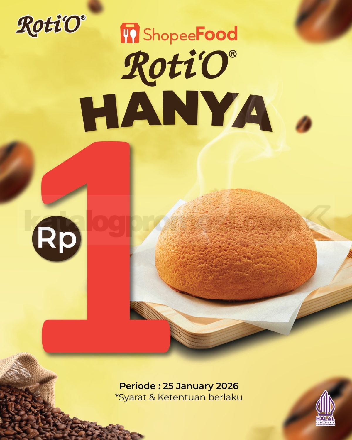 Promo Roti’O ShopeeFood Beli Roti Rp. 1 berlaku hanya di tanggal 25 Januari 2026, transaksi via ShopeeFood di outlet tertentu dengan jam promo terbatas.