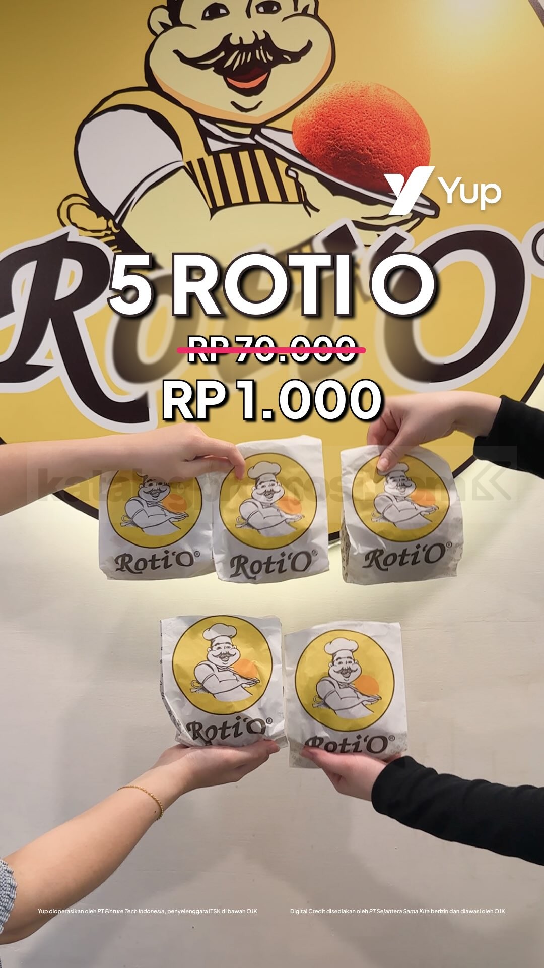 Promo berlaku untuk pembelian 5 pcs Roti’O dengan harga hanya Rp 1.000,- menggunakan aplikasi Yup.