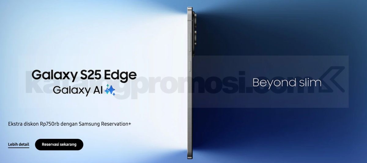 Galaxy S25 Edge hadir dengan desain tipis, keren, dan tetap kuat. Bukan cuma slim, ini sudah Beyond Slim! Sekarang kamu bisa amankan Galaxy S25 Edge lewat promo Samsung seru: cukup bayar Rp250 ribu di Samsung Reservation+ dan dapatkan diskon Rp750 ribu langsung saat pre-order.