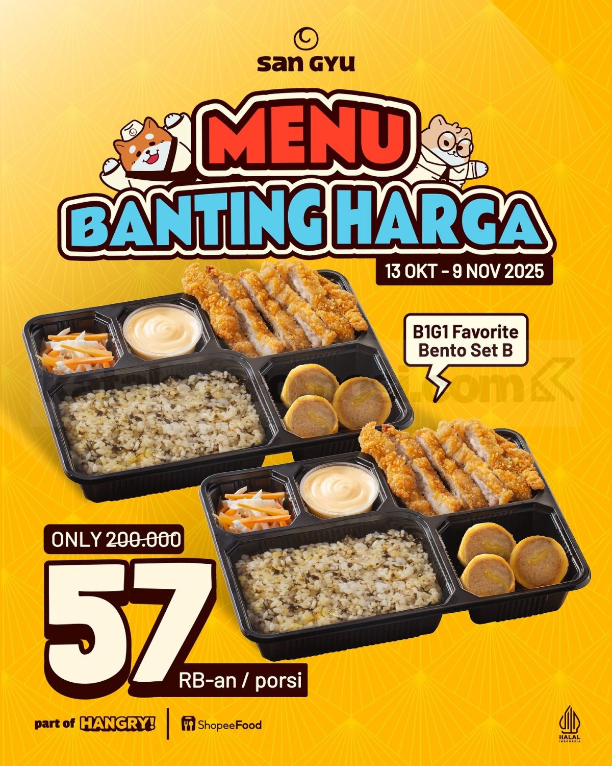 Promo San Gyu Menu Banting Harga Hanya 57 Ribuan Porsi*, mulai 13 Oktober sampai 9 November 2025,