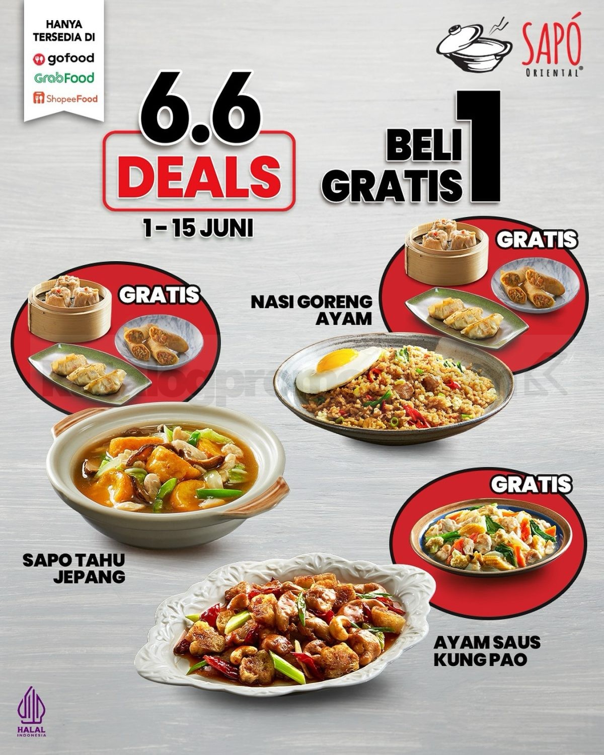 Promo Sapo Oriental 10.10 Deals! Beli 1 Gratis 1 menu favorit mulai tanggal 1–15 September 2025 di GoFood, GrabFood, dan ShopeeFood.