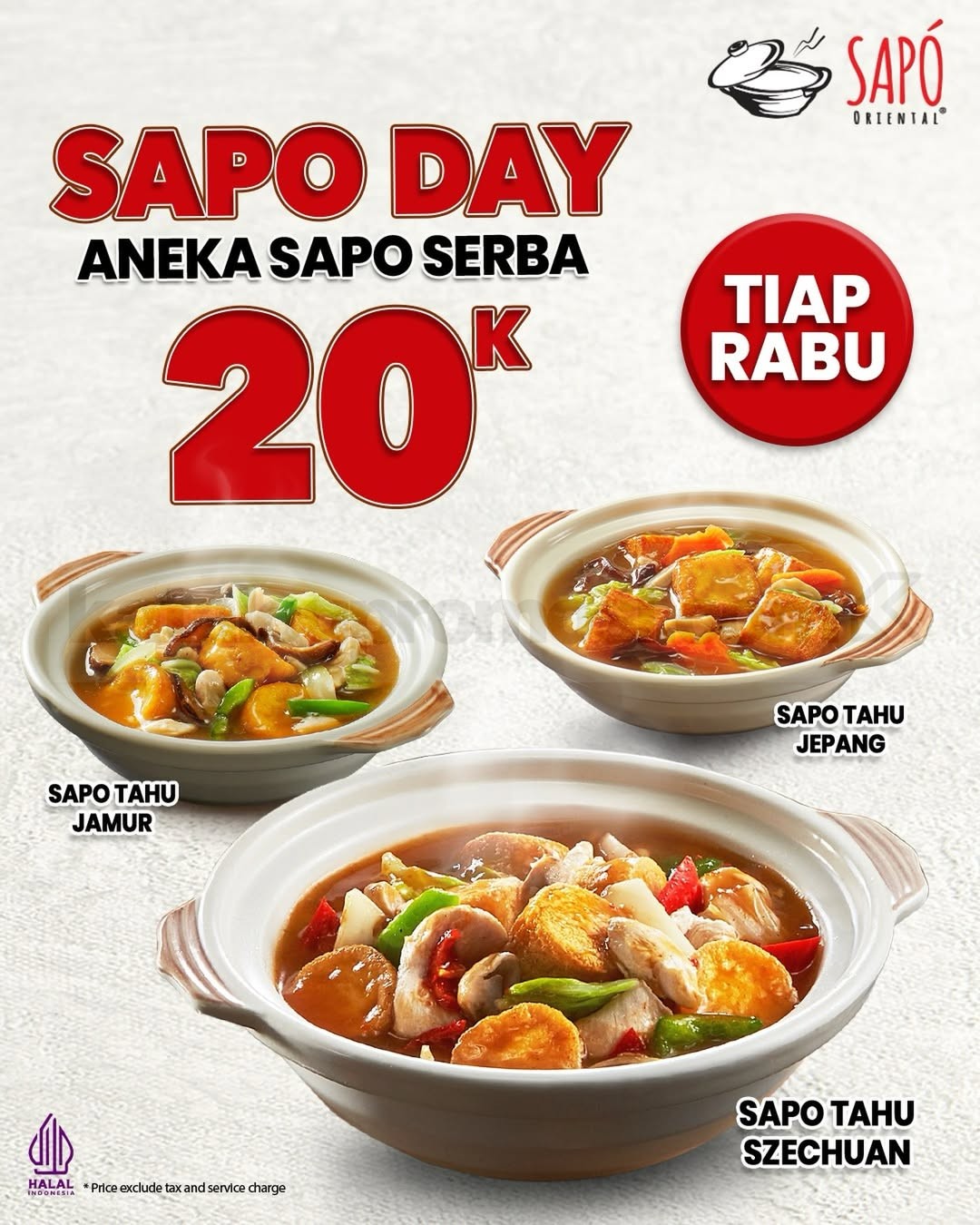 • Berlaku untuk pilihan menu sapo tertentu dengan harga spesial Rp. 20.000