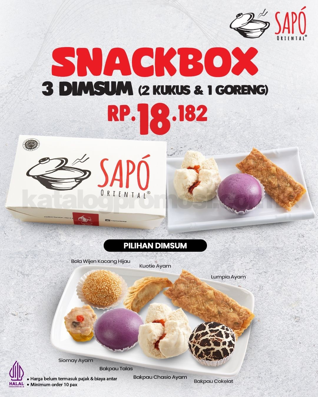 Promo Sapo Oriental Snack Box & Lunch Box Mulai Rp. 18.000 paket konsumsi acara minimal 10 pax tersedia di outlet tertentu