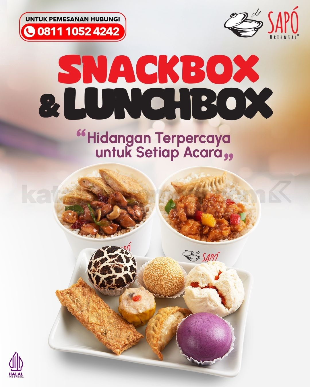👉 Cek gambar Promo Sapo Oriental Snack Box Lunch Box di bawah ini untuk lihat pilihan paket konsumsi praktis buat acara kamu