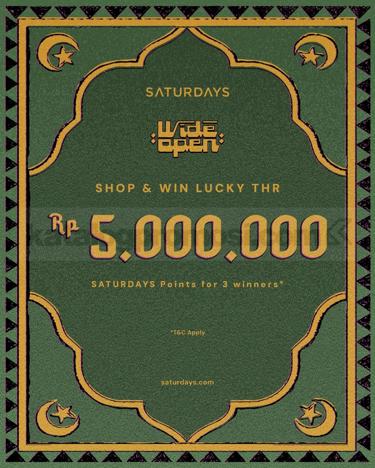 Promo SATURDAYS Ketupat THR Hadiah Hingga 5 Juta Rupiah tersedia melalui store dan platform resmi SATURDAYS yang berpartisipasi dalam program ini.