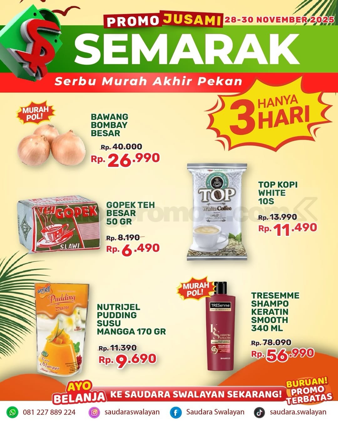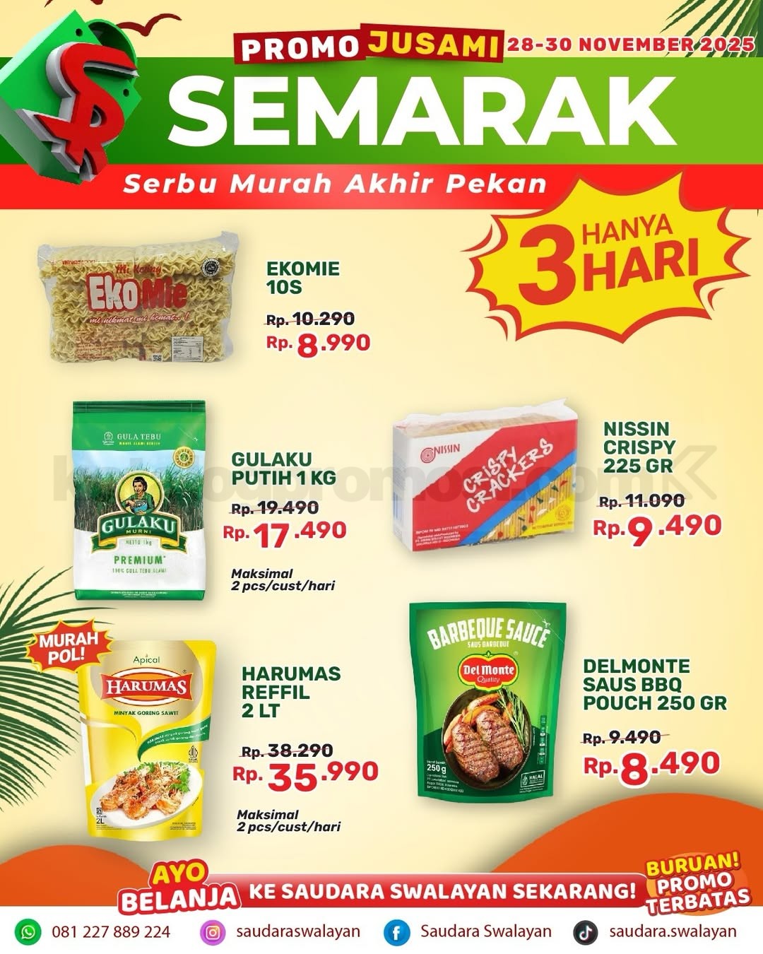 ๐ Cek gambar promo Saudara Swalayan Jusami Semarak 28-30 November 2025 di bawah ini untuk lihat semua produk dan harga lengkap!