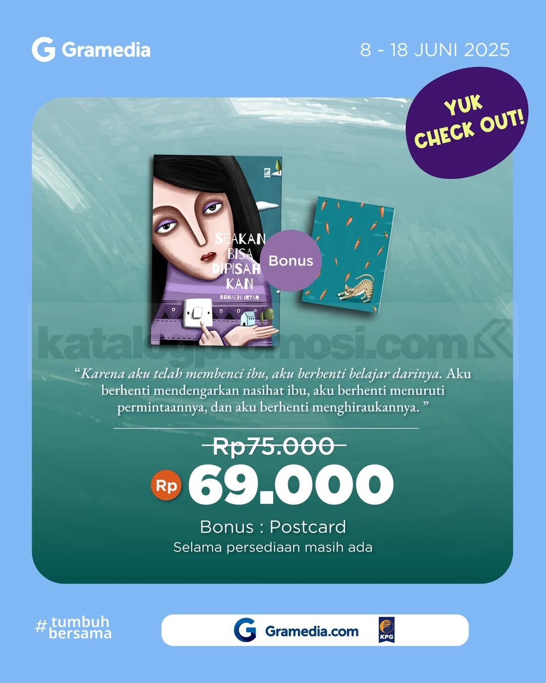 Lagi cari buku yang dalem dan nyentuh banget? Pas banget! Ada promo buku “Seakan Bisa Dipisahkan” dari Gramedia cuma Rp69 ribu dan dapet bonus postcard keren yang eksklusif. โจ