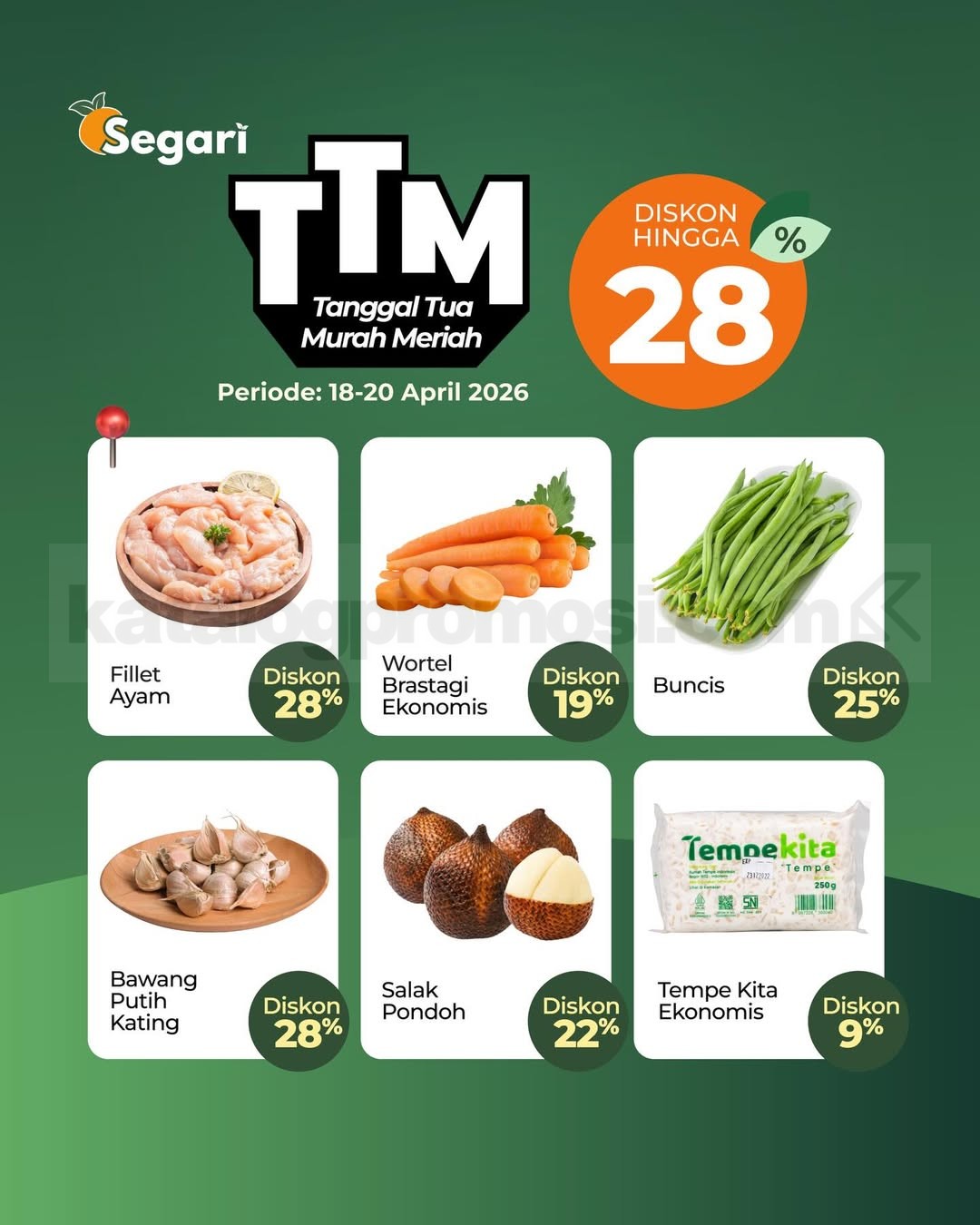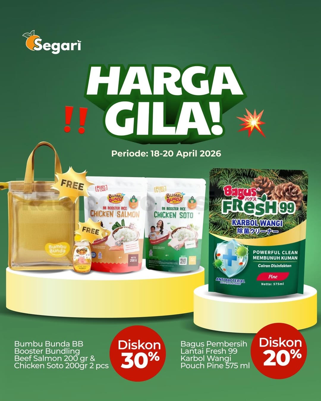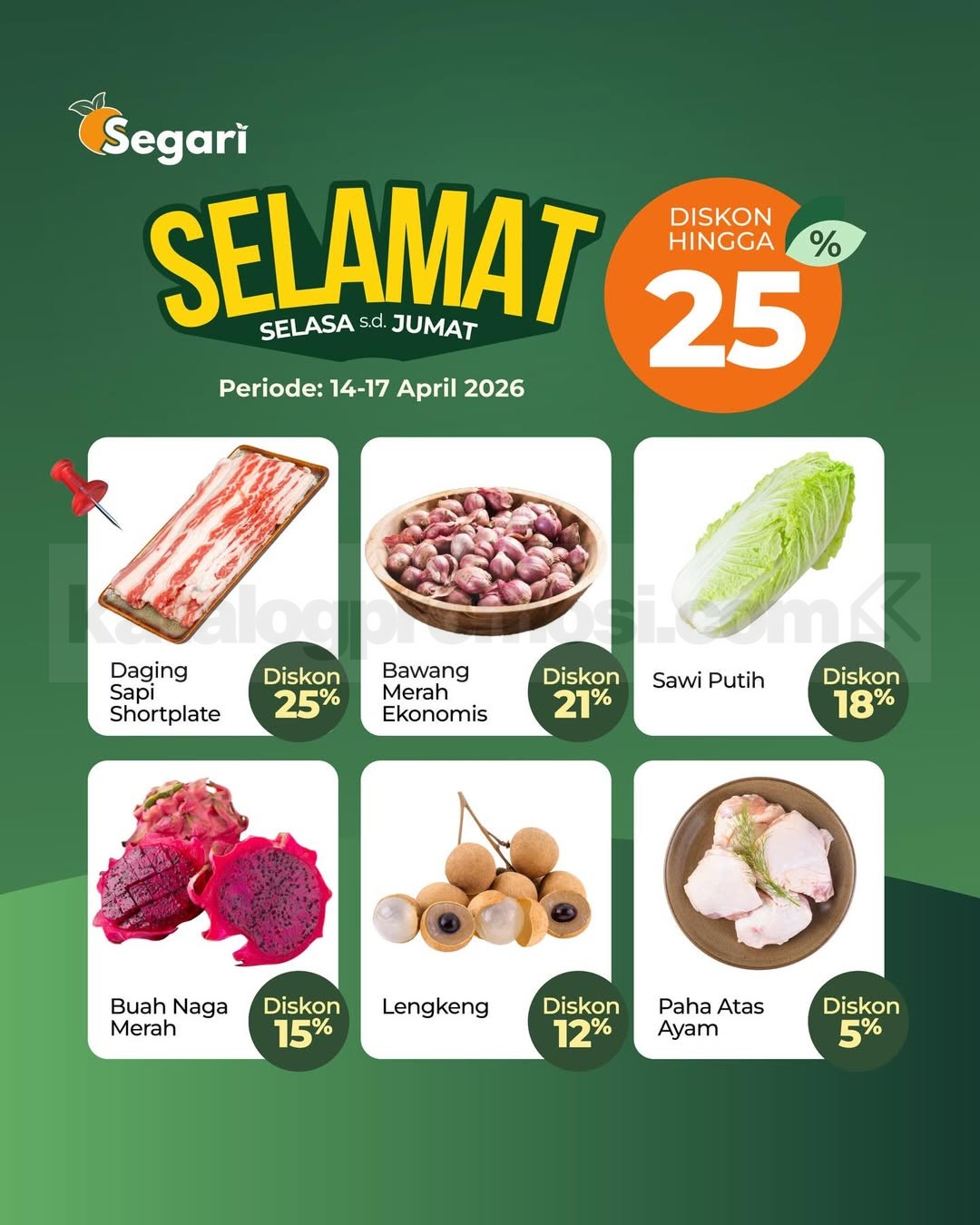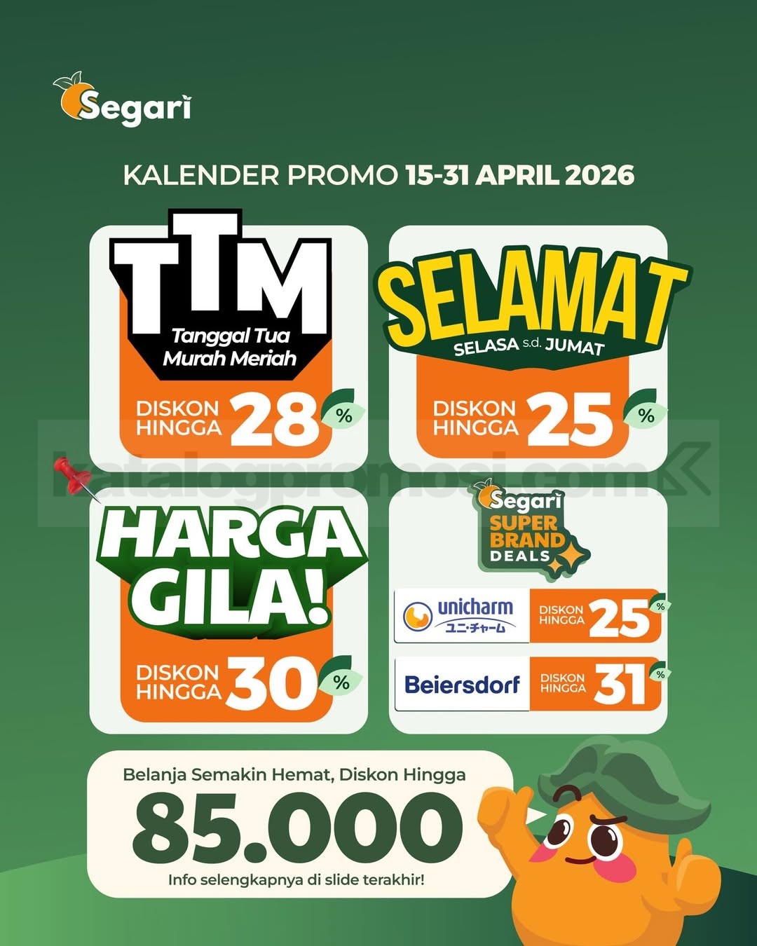 Promo berlangsung selama 15–30 April 2026 dengan berbagai program diskon yang berjalan bergantian sesuai kalender promo Segari.