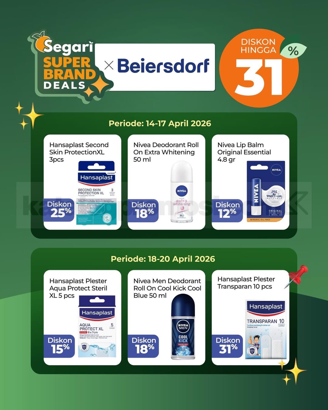 👉 Cek gambar Promo Segari Kalender April Diskon hingga 31% di bawah ini untuk lihat rangkaian promo hemat yang bisa kamu manfaatkan sepanjang periode!