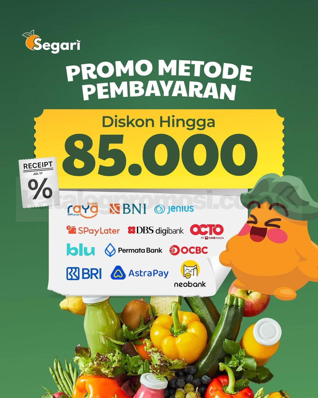 Selain itu, pengguna juga bisa menikmati promo metode pembayaran dengan potongan hingga Rp85.000, membuat belanja makin ringan dan praktis melalui aplikasi Segari.