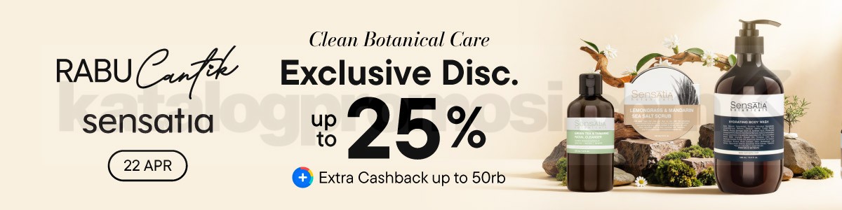 Promo Sensatia Botanicals Rabu Cantik diskon hingga 25% + cashback 50 ribu, belanja produk alami berlaku mulai tanggal 22 April 2026.