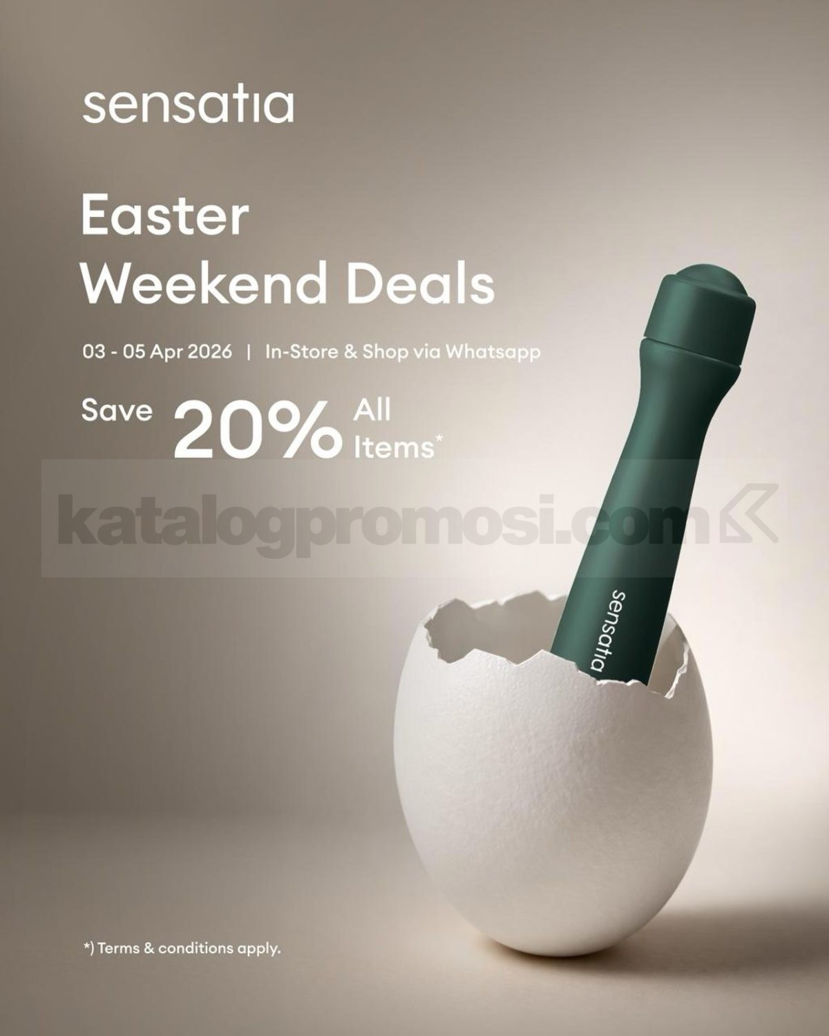 Promo Sensatia Easter Weekend Deals Diskon 20% ini berlaku untuk pembelian semua produk dalam satu transaksi selama periode berlangsung.