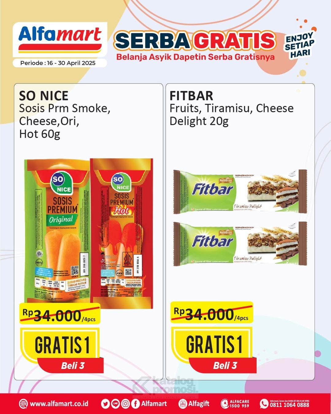 Promo Serbagratis Alfamart kali ini bikin belanja makin seru! 😍 Mulai dari Beli 1 Gratis 1 hingga Beli 3 Gratis 1, kamu bisa dapetin berbagai produk pilihan. Ditambah lagi, ada cashback sampai 25%! Langsung aja cus ke Alfamart terdekat atau lewat aplikasi Alfagift. Ongkir? Tenang, ada gratis ongkir sepuasnya! 🛒💸