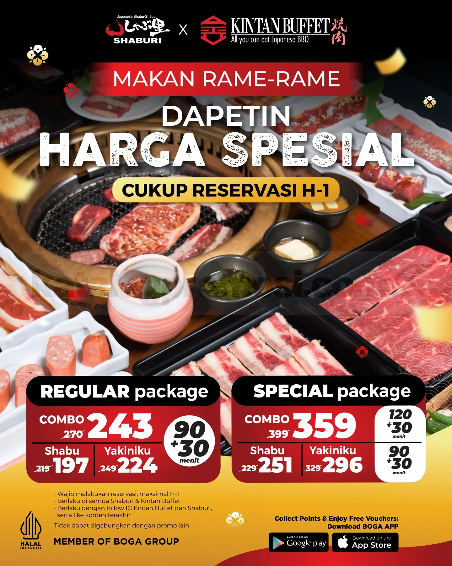 Promo Shaburi Kintan Buffet AYCE mulai Rp. 197.000 dengan pilihan paket Regular dan Special untuk makan bareng, berlaku selama periode promo di seluruh outlet.