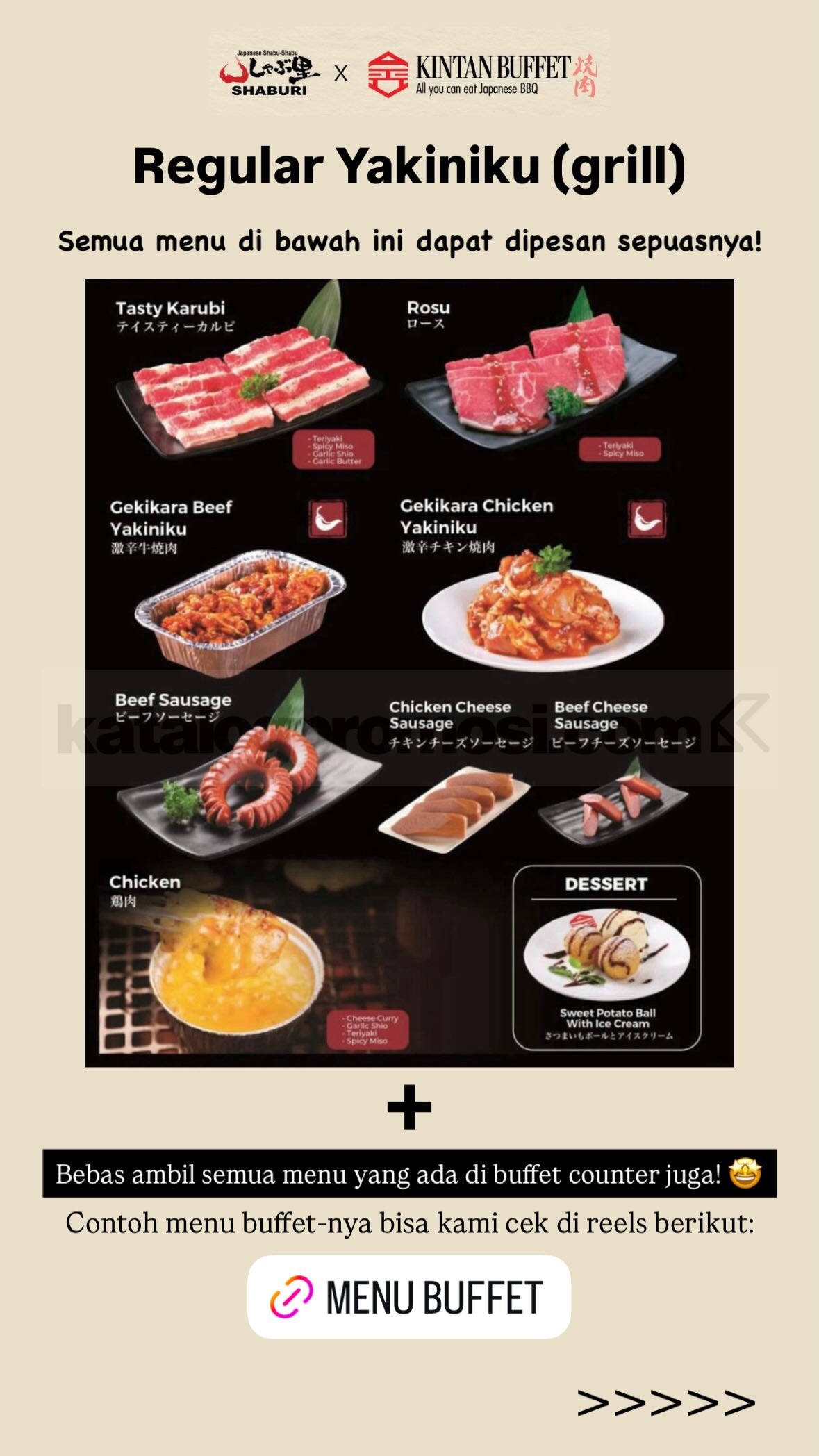 - Pelanggan wajib follow Instagram Kintan Buffet atau Shaburi dan like konten terakhir.