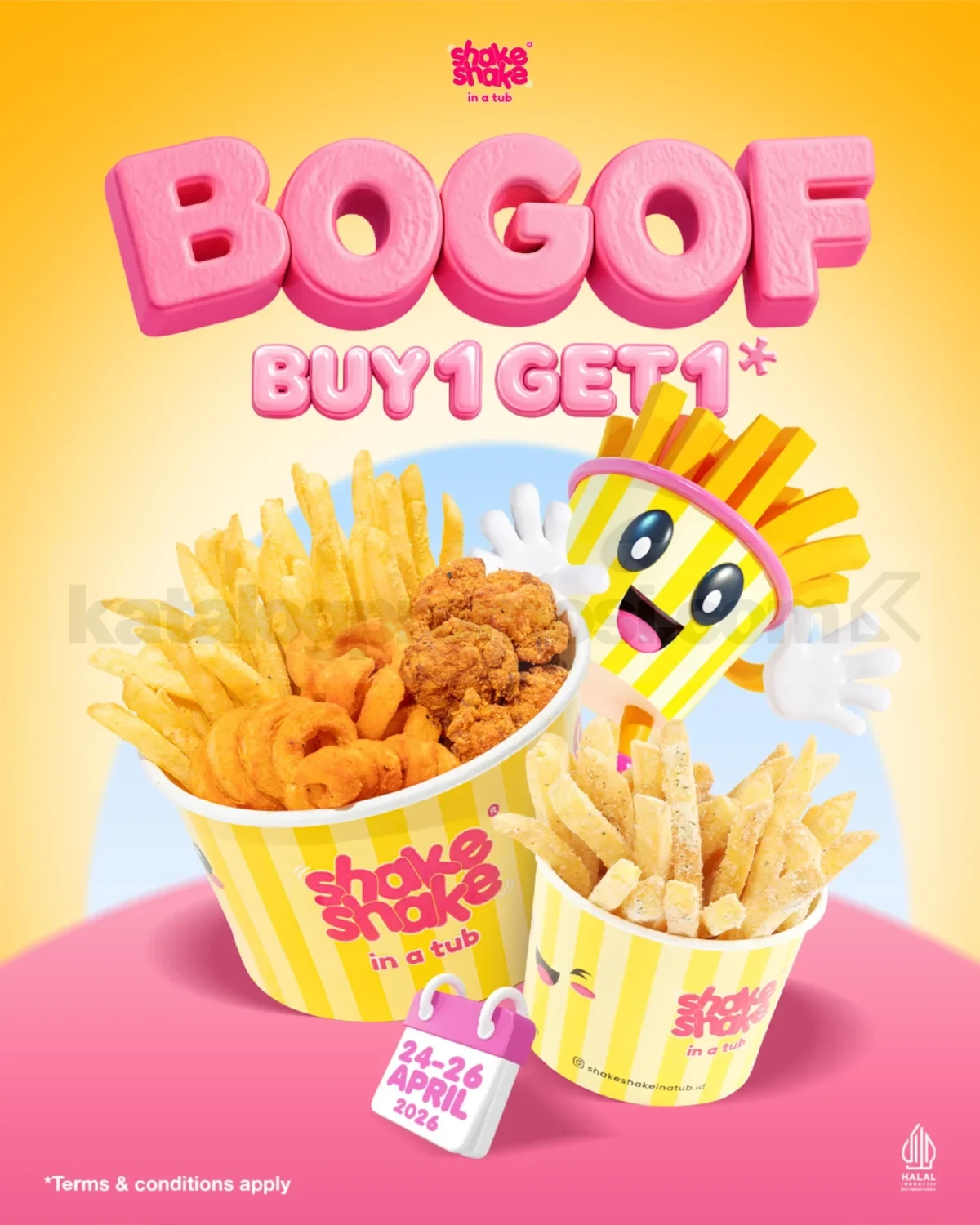 Jangan sampai kelewatan Promo Shake Shake in a Tub BOGOF Buy 1 Get 1 Free ini, apalagi kuotanya terbatas setiap hari. Pas banget buat nemenin waktu santai atau jadi alasan buat mampir ke Pakuwon Mall bareng teman. Yuk manfaatkan promonya selagi masih berlangsung!