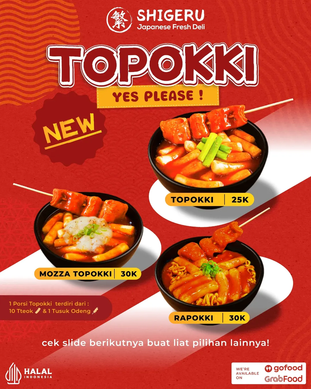 Promo Shigeru NEW Topokki Series β Menu Topokki, Mozza Topokki, Rapokki mulai Rp25.000, tersedia mulai tanggal 30 April 2025 di semua outlet Shigeru.