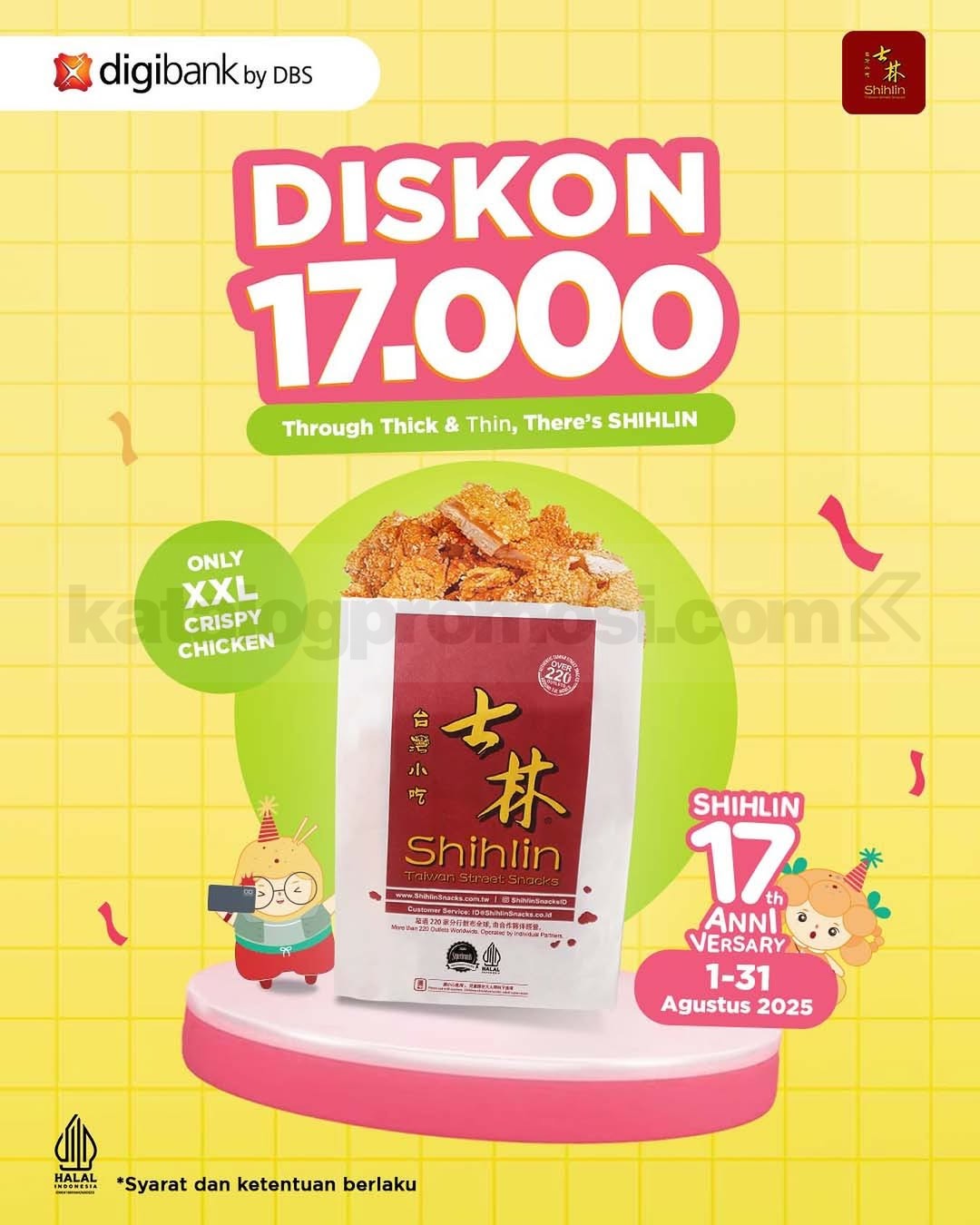 Promo Shihlin Diskon Rp17.000 untuk XXL Crispy Chicken spesial 17th Anniversary! Berlaku pakai digibank by DBS selama Agustus 2025.
