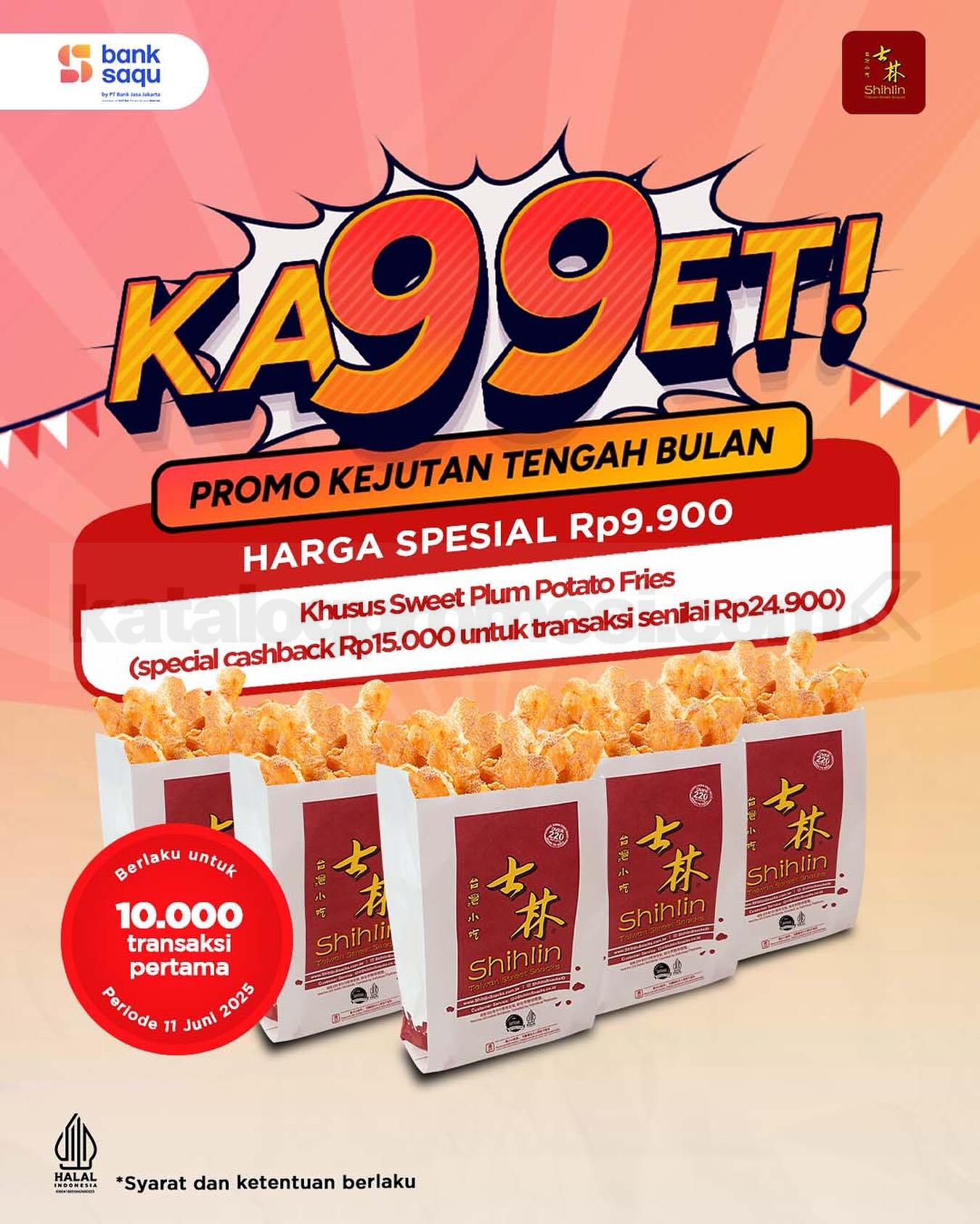 😱 Promo Kejutan Tengah Bulan dari Bank Saqu balik lagi! Kali ini, Bank Saqu menggandeng SHIHLIN lewat program KA99ET! yang bikin jajan favorit jadi super hemat.