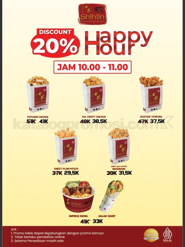 Promo SHIHLIN Happy Hour Diskon 20%, berlaku selama bulan Agustus. pukul 10.00 – 11.00