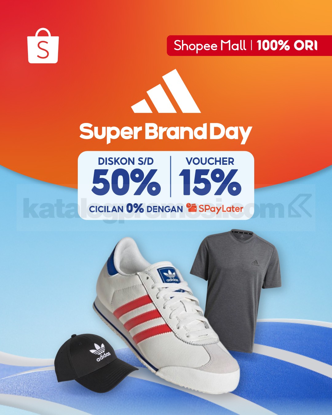 Promo Shopee Super Brand Day Adidas cuma hari ini! Diskon sampai 50%, ekstra voucher 15%, dan cicilan 0% pakai SPayLater, hanya di Shopee!