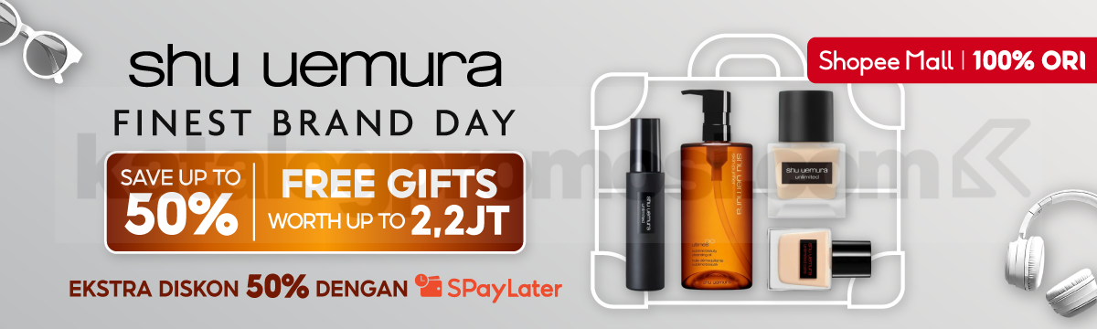 - Diskon hingga 50% berlaku untuk produk pilihan Shu Uemura.