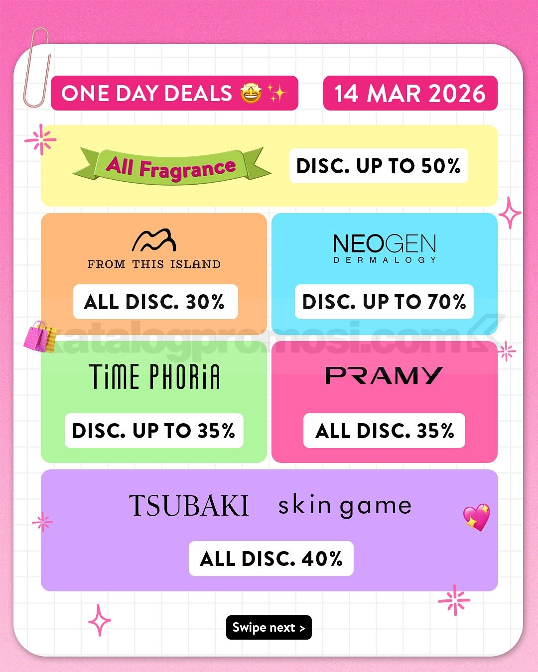 Nikmati kesempatan upgrade skincare routine-mu tanpa bikin kantong bolong. Ada produk dari brand populer yang biasanya bikin wishlist menumpuk, sekarang bisa kamu bawa pulang dengan diskon luar biasa! Jangan lupa manfaatkan aplikasi untuk melihat stok, detail harga, dan penawaran tambahan yang mungkin tersedia khusus pengguna aplikasi.