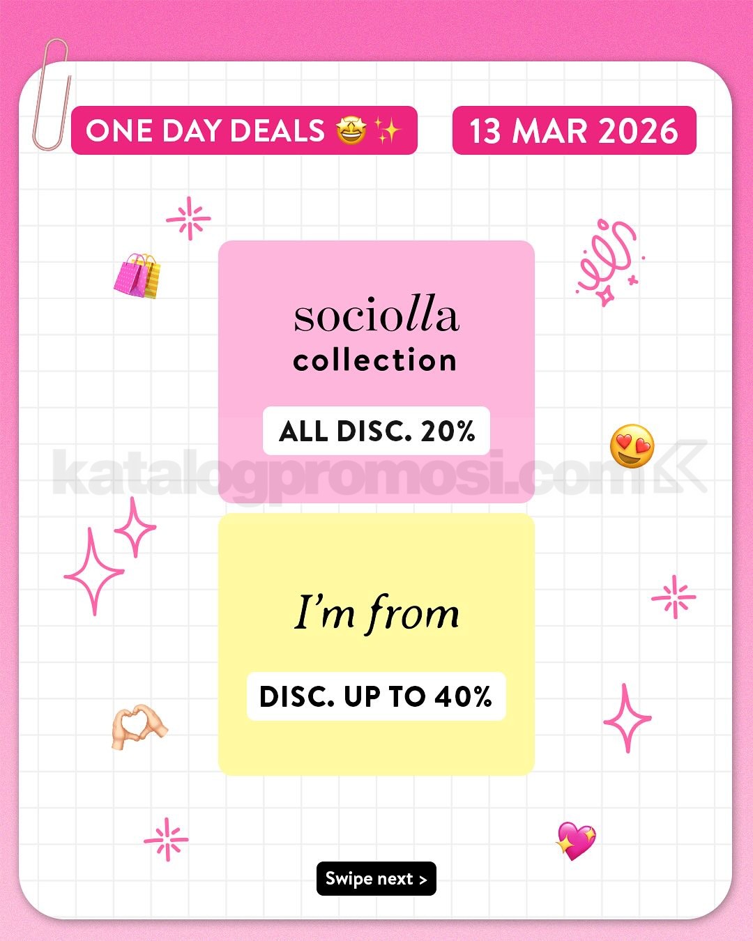 Promo Sociolla One Day Deals diskon hingga 80% untuk brand favorit kamu + belanja mudah via aplikasi, berlaku mulai tanggal 13-19 Maret 2026.