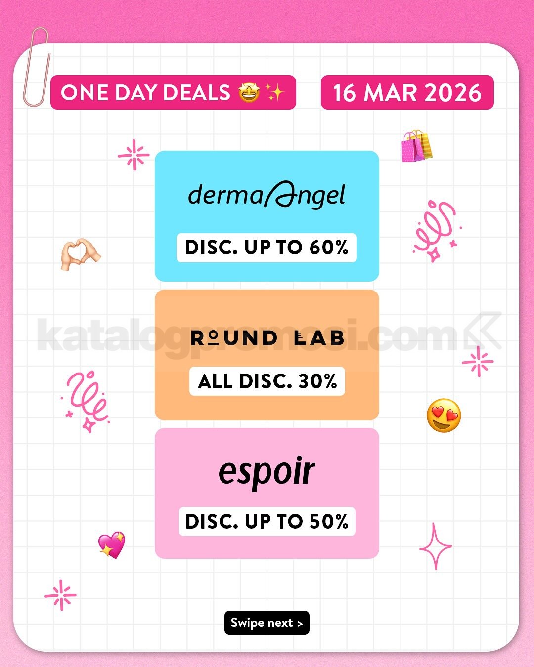 Beauty Bestie, siap-siap ya! 📢 One Day Deals di Sociolla kembali dengan penawaran yang bikin kantong senang dan mood makin happy. Diskon hingga 80% untuk berbagai brand favorit kamu menanti, mulai dari skincare, makeup, hingga body care. Semua promo ini berlaku mulai tanggal 13 sampai 19 Maret 2026, jadi jangan sampai kelewatan.