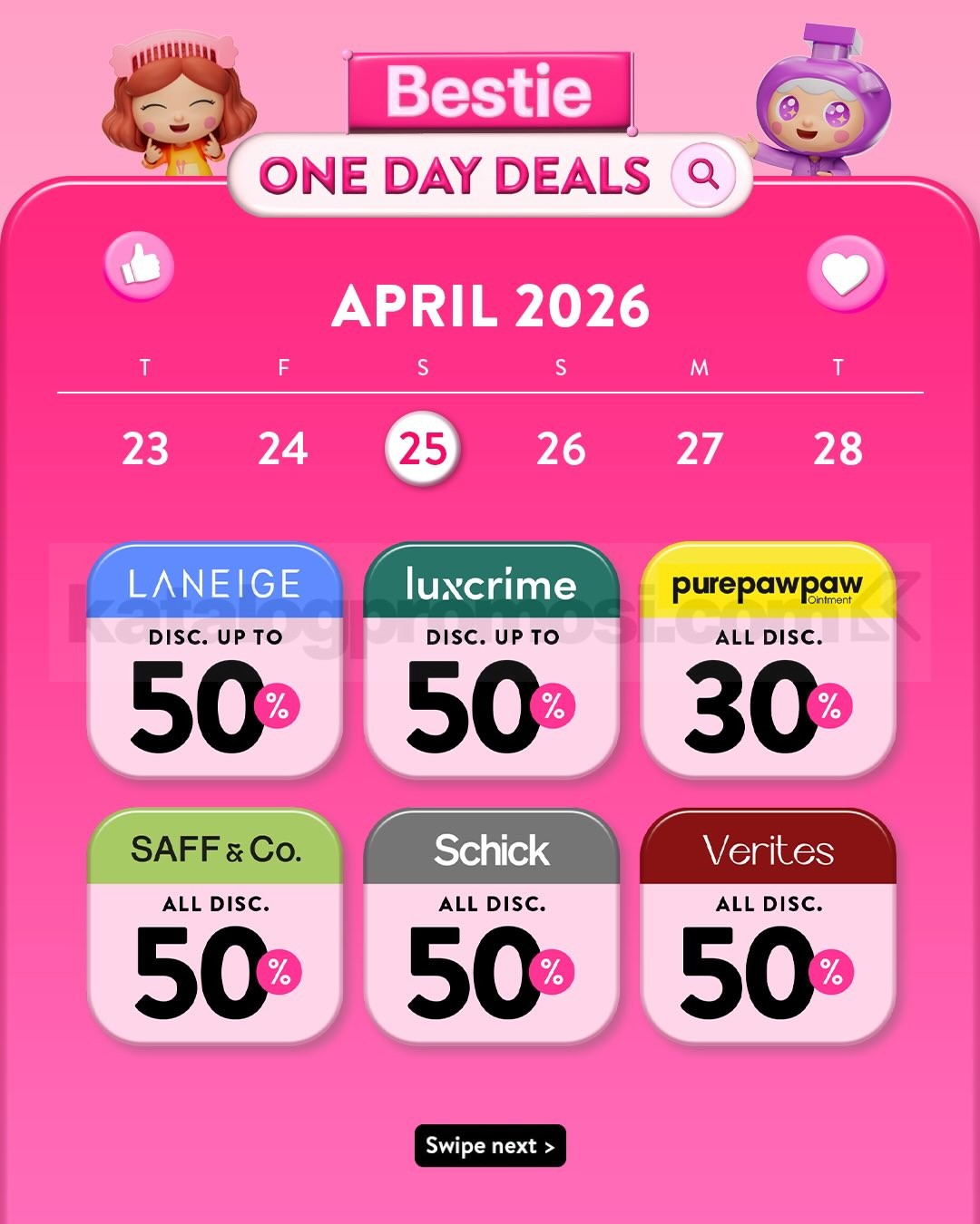Selama dua hari aja, kamu bisa dapetin diskon gila-gilaan sampai 80% untuk berbagai produk favorit dari brand ternama. Pilihannya juga lengkap, jadi kamu bebas eksplor kebutuhan beauty kamu tanpa harus nunggu promo besar lainnya 💄✨