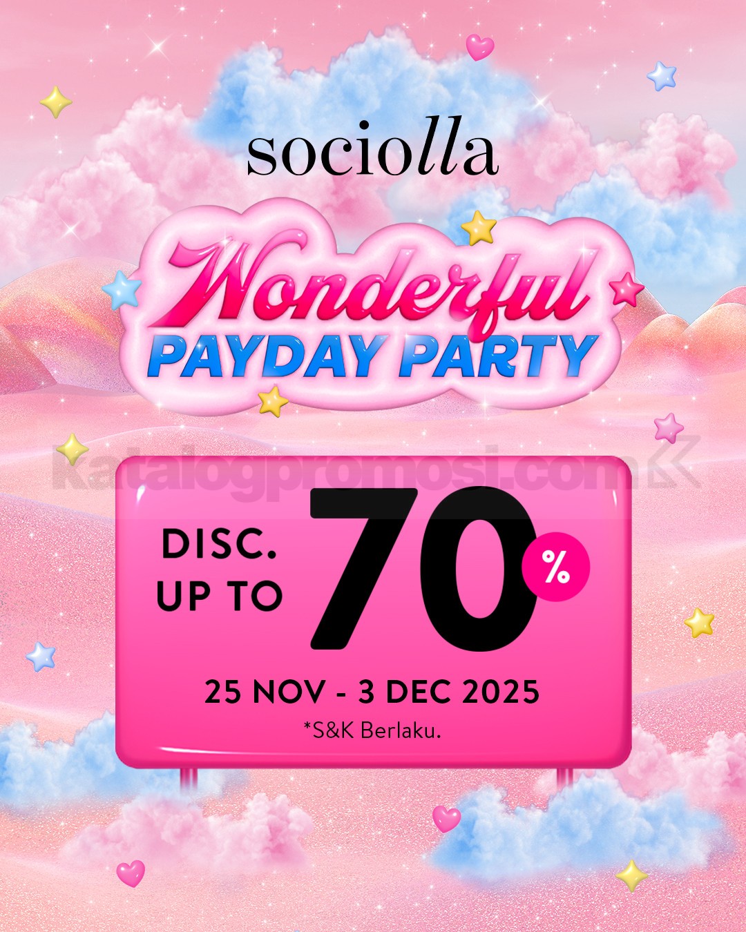 Promo SOCIOLLA Wonderfulf Payday Party Diskon Hingga 70% berlaku 25 November – 3 Desember 2025 di seluruh Sociolla store Indonesia.
