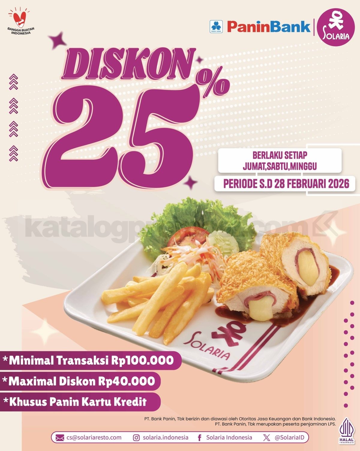 Promo Solaria Panin Bank Diskon 25% dengan Kartu Kredit Panin Bank berlaku sampai 20 Februari 2026.