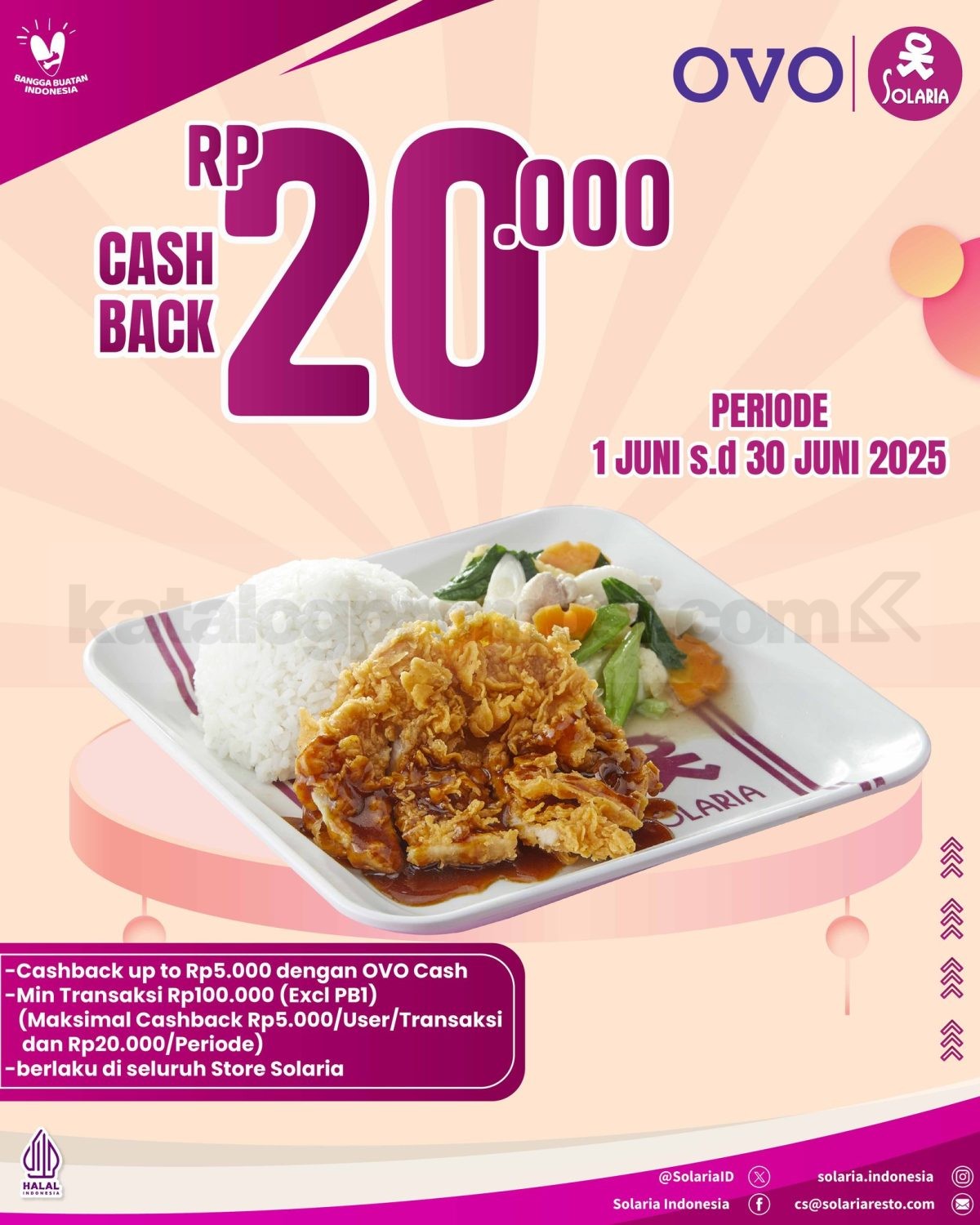 Promo Solaria Cashback QRIS Livin’ by Mandiri Rp. 50.000 untuk transaksi Rp200 ribu via QRIS, berlaku sampai 31 Desember 2025 di seluruh outlet.