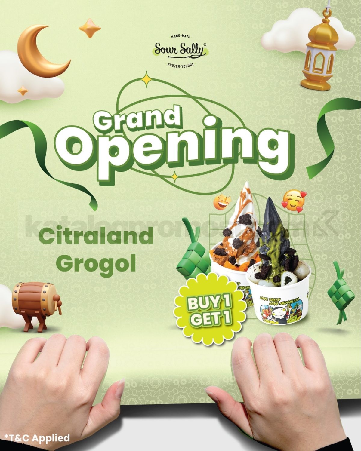 Promo Sour Sally Grand Opening Buy 1 Get 1 nikmati es krim yogurt favorit dengan promo beli 1 gratis 1 berlaku mulai tanggal 10 Maret 2026 – 16 Maret 2026 di Citraland Grogol.