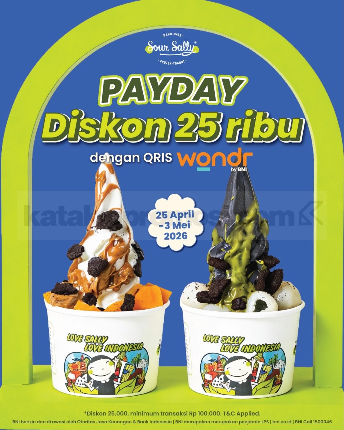 Promo Sour Sally Payday Deal Diskon Rp. 25.000 dengan pembayaran QRIS wondr BNI min. Rp100.000 berlaku 25 April 2026 – 3 Mei 2026.