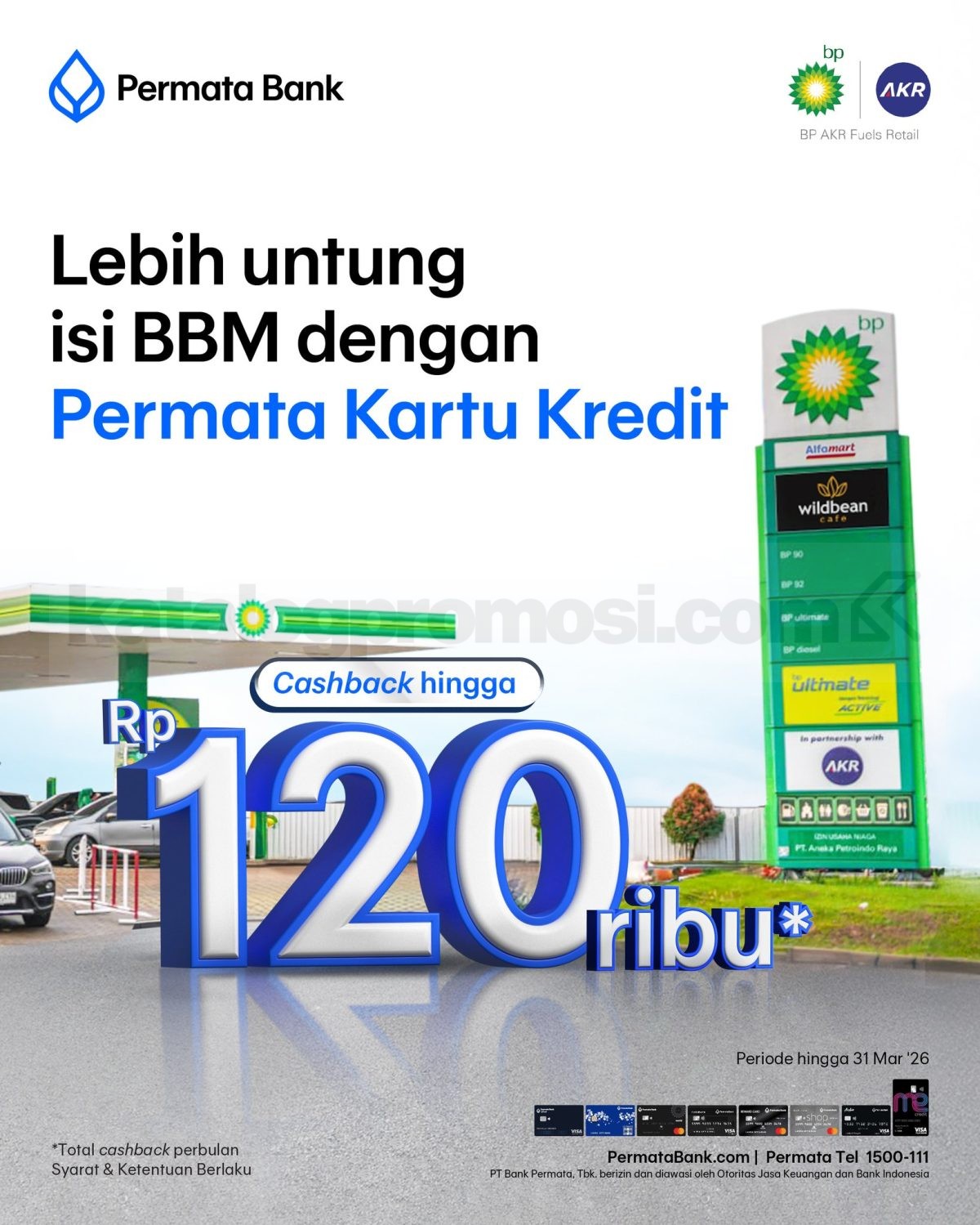 Promo SPBU BP Permata Bank cashback hingga Rp. 120.000 per bulan dengan Permata Kartu Kredit Platinum, Black, dan Infinite berlaku hingga 31 Maret 2026.