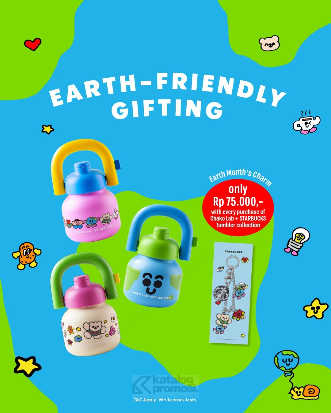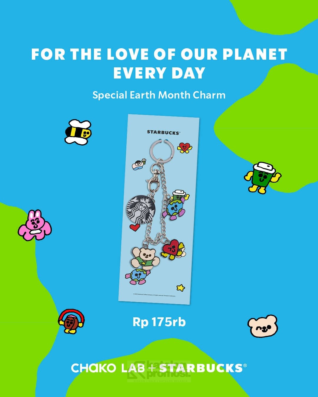 Setiap pembelian 1 tumbler Chako Lab + Starbucks, berhak membeli 1 Earth Month charm seharga Rp. 75.000.