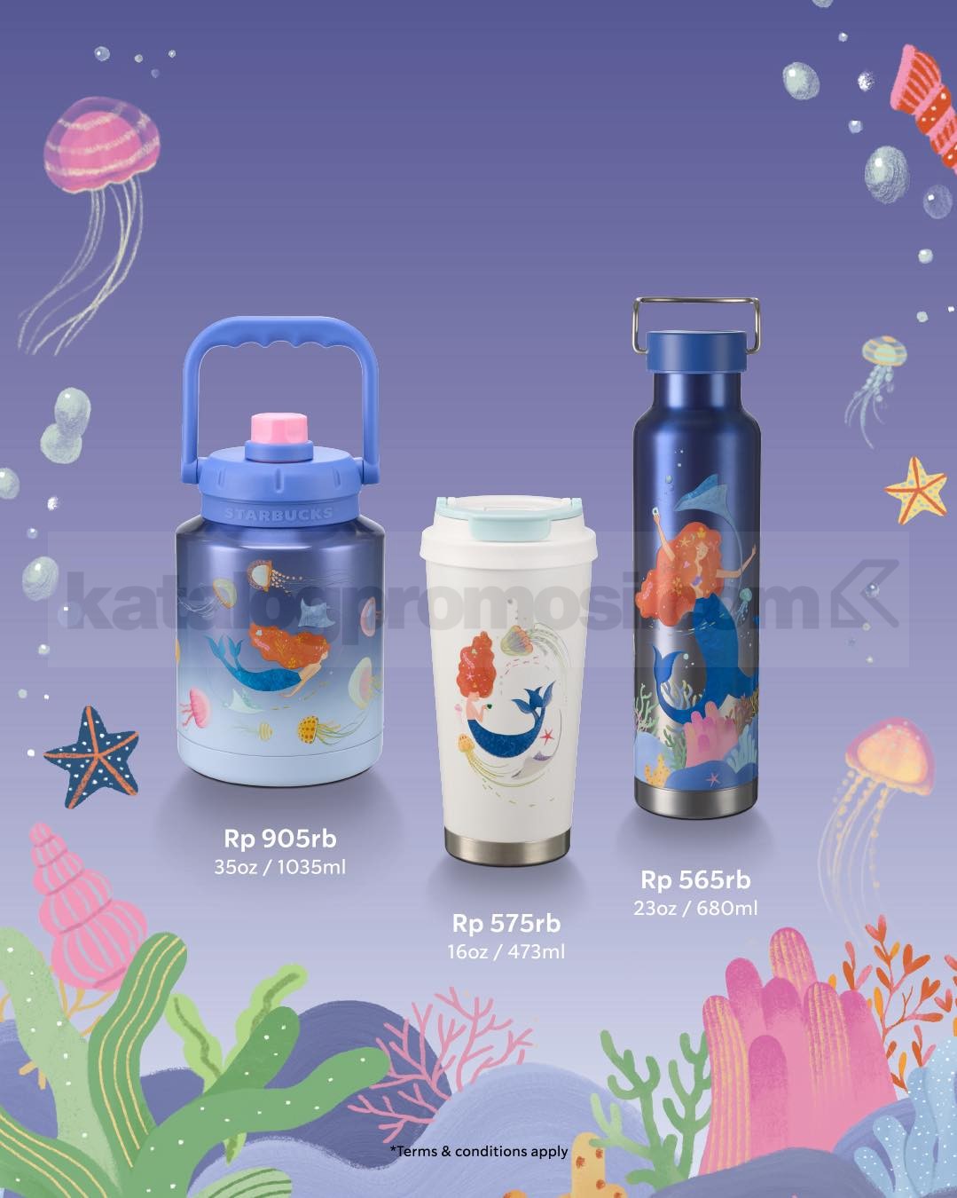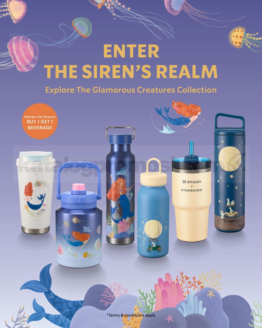 Kick off your Monday with cute vibes! โจ Starbucks resmi meluncurkan Glamorous Creatures Collection, merch baru yang membawa sentuhan under the sea magic ๐ง๐ปโโ๏ธ๐. Koleksi ini bisa kamu bawa pulang sambil nikmatin reward seru: Buy 1 Get 1 Free Beverage!