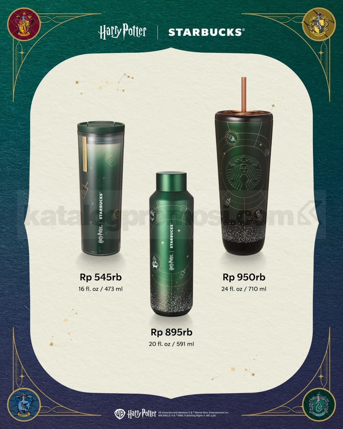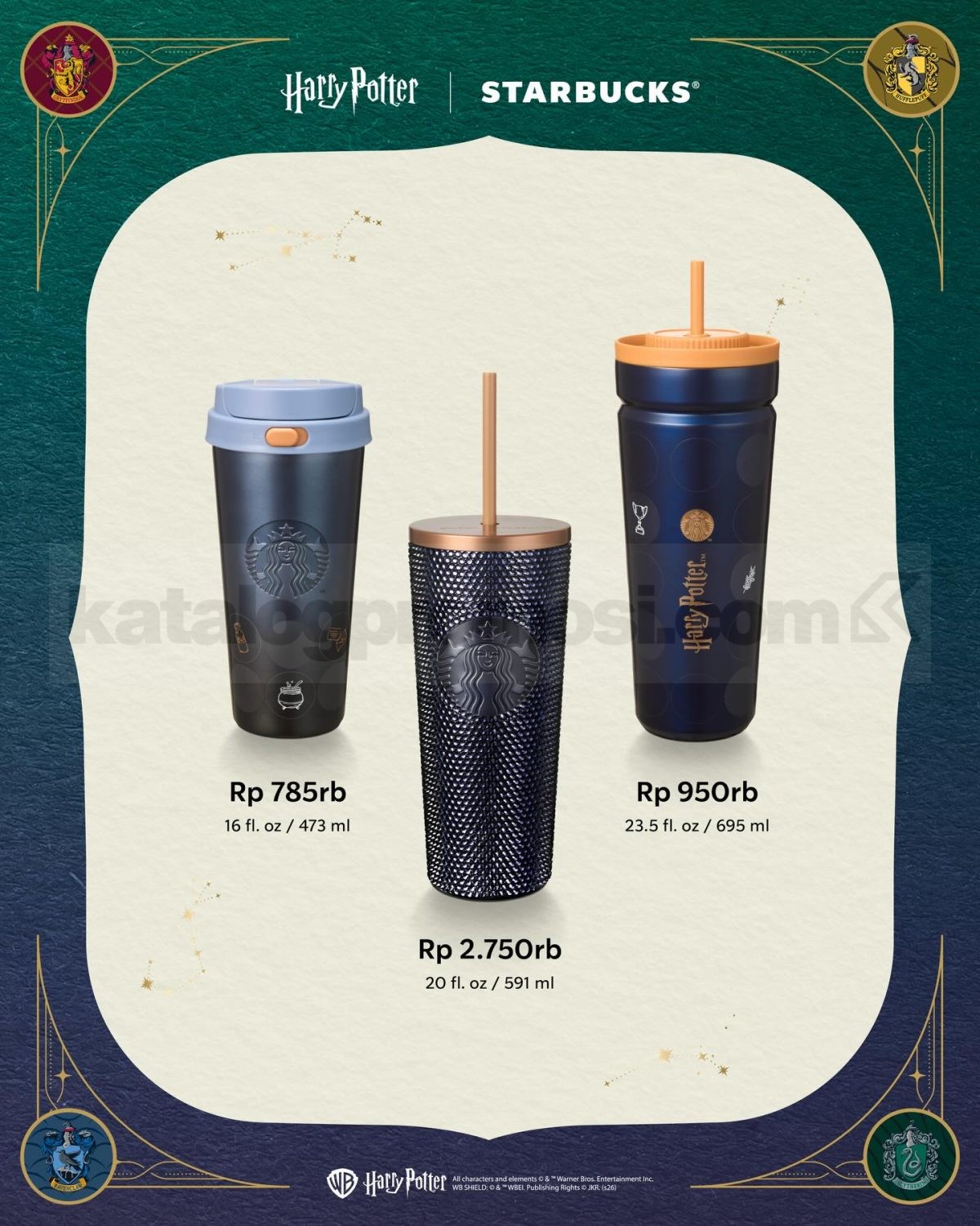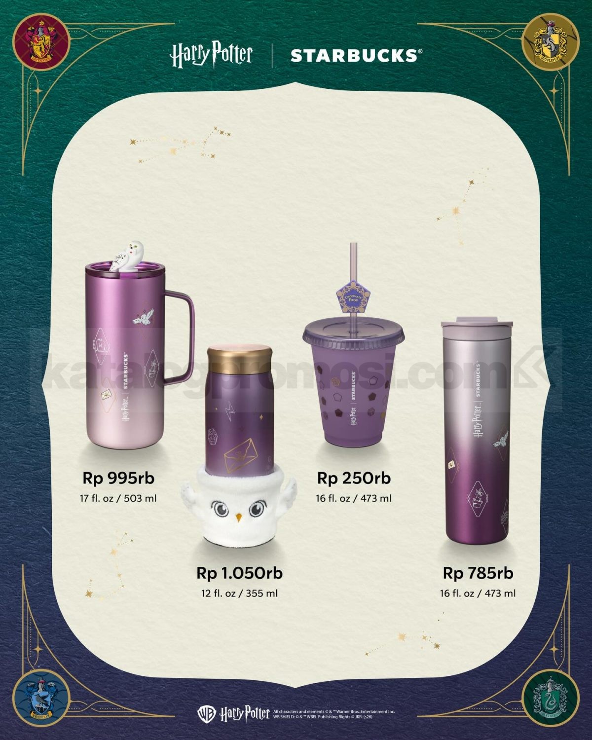 Promo Starbucks Harry Potter Collection Tumbler mulai Rp. 250.000 tersedia di gerai Starbucks selama stok produk masih tersedia.