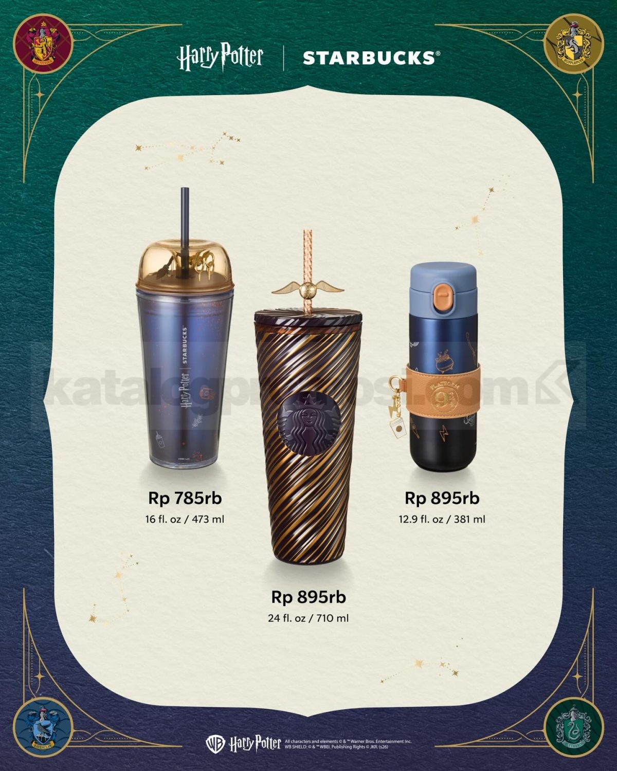 Koleksi tersedia di gerai Starbucks yang menyediakan merchandise Harry Potter.