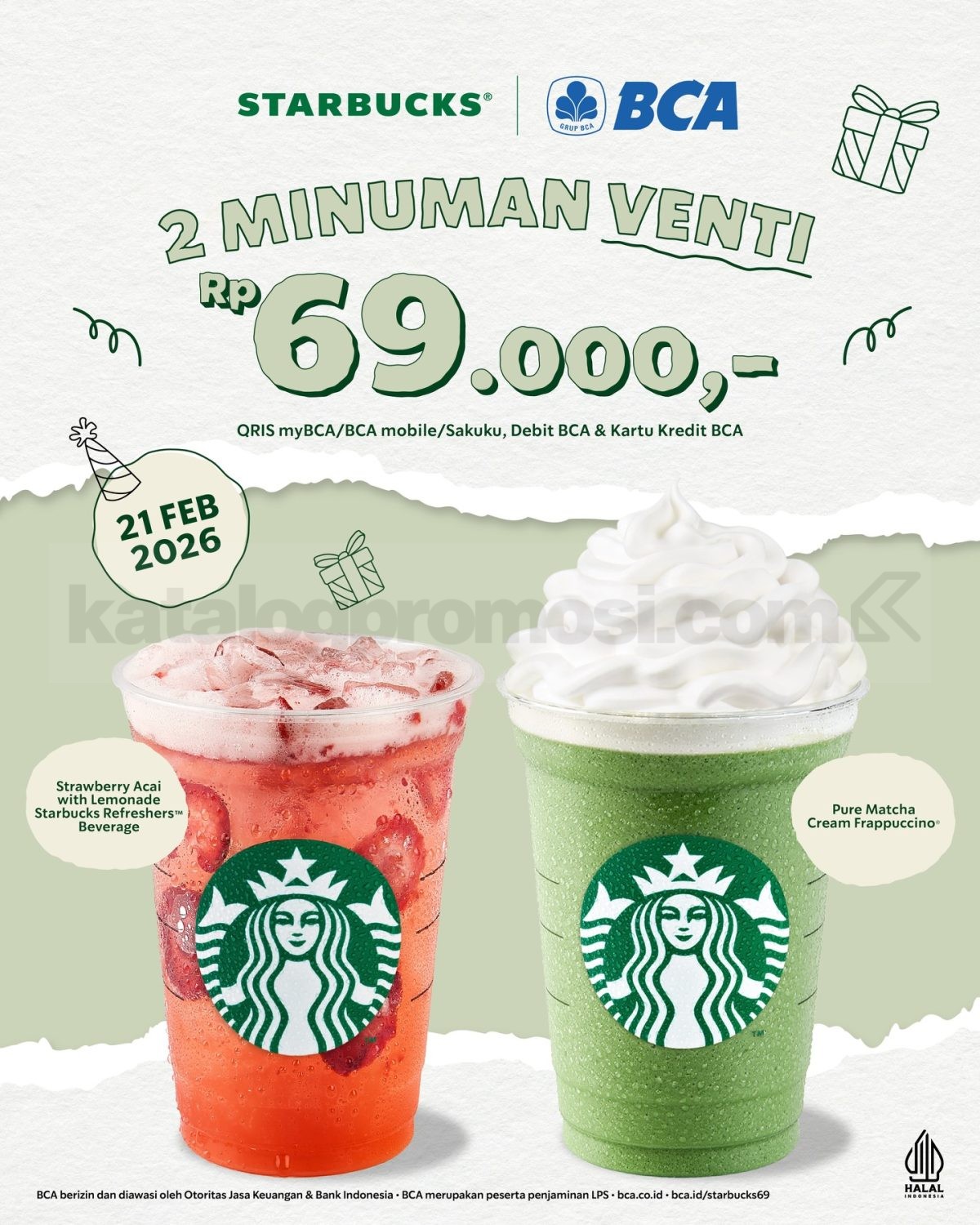 👉 Cek gambar Promo Starbucks HUT BCA 69 2 Venti Rp. 69.000 di bawah ini untuk lihat detailnya.